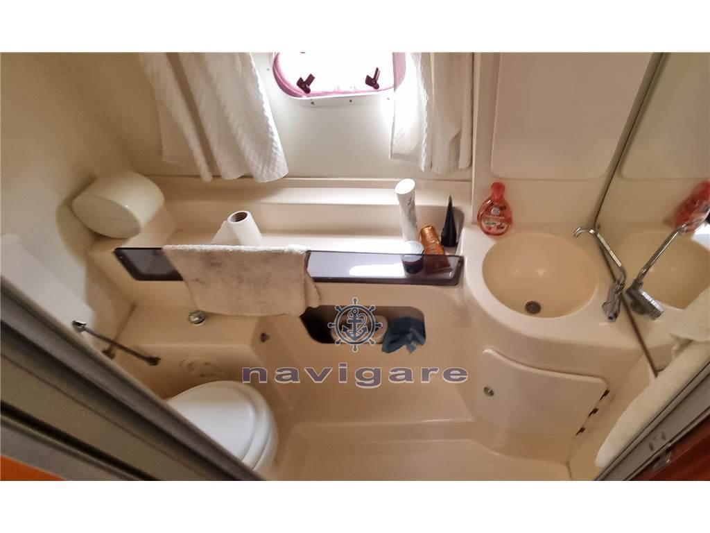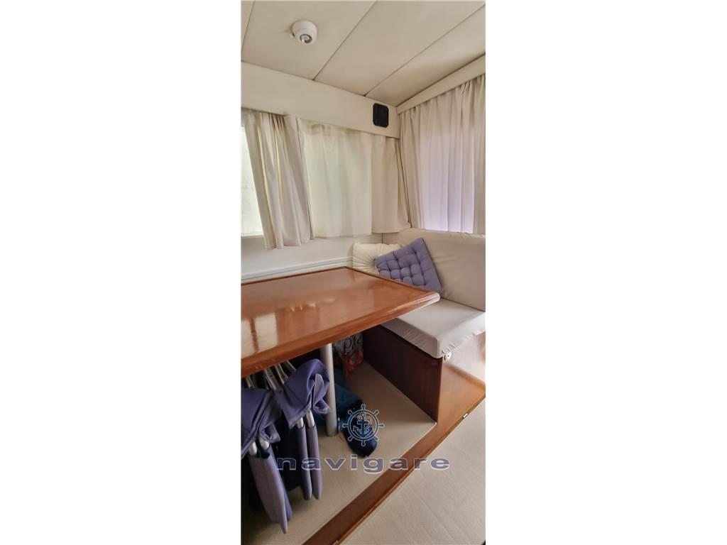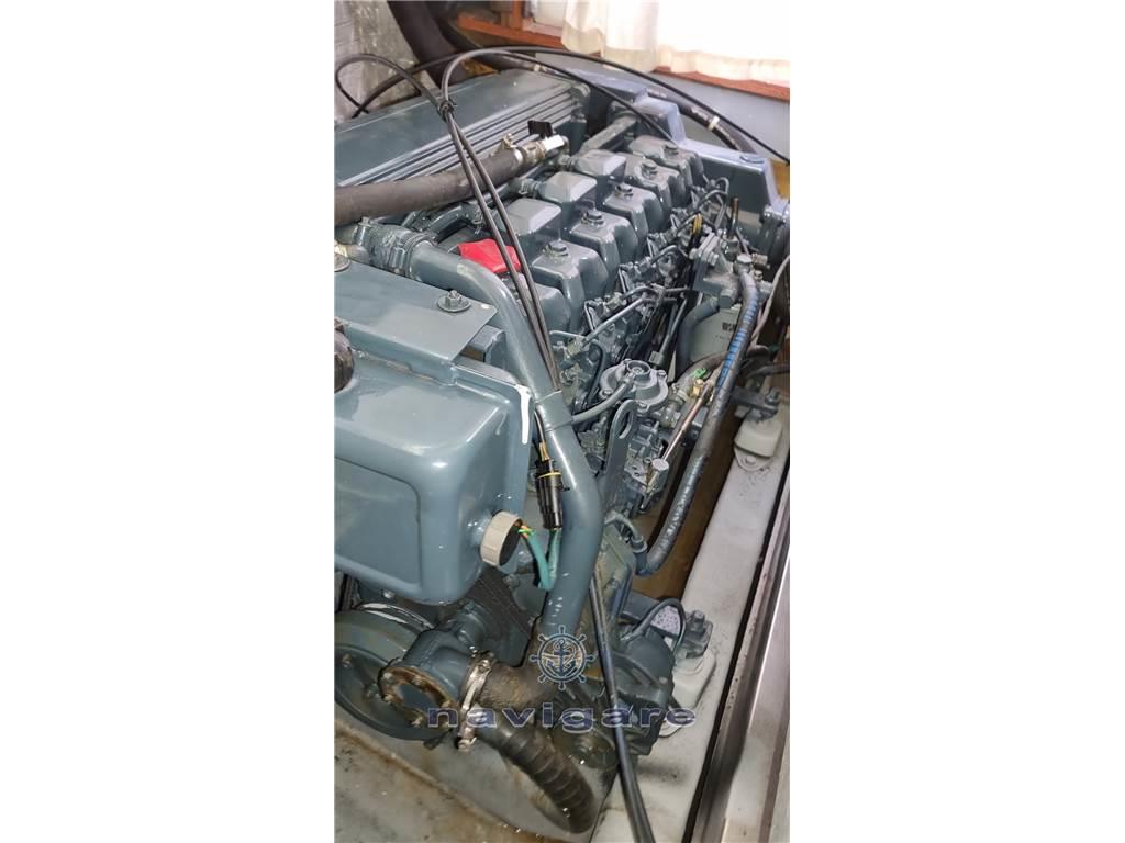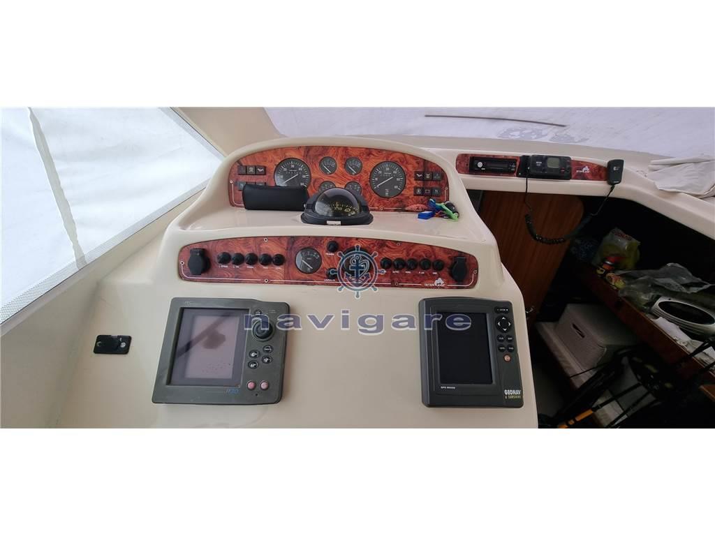 Notas internasNotas de la instrumentaciónBussola, Contamiglia, Ecoscandaglio, GPS, Radio VHF.Notas de armamentoAllestimento tecnico e di coperta:Allarme motore, Ancora, Autogonfiabile, Doccia esterna, Flap elettrici, Luci di cortesia, Piattaforma, Pompa di sentina automatica, Pompa di sentina manuale, Presa 220V banchina, Salpa Ancore Elettrico, Scaletta da bagno. Dotazioni domestiche di bordo: Pavimento interno in legno, Prese interne 12v, Prese interne 220v, WC marino elettrico. Dotazioni di sicurezza: Giubbetti di salvataggio. Intrattenimento: Radio AM/FM. Cucina ed elettrodomestici: Cucina, Frigorifero interno. Tappezzerie: Cuscineria completa, Cuscineria di prua, Cuscineria fly, Oscuranti, Teli copri finestra, Telo Copertura Fly, Tendalino. |