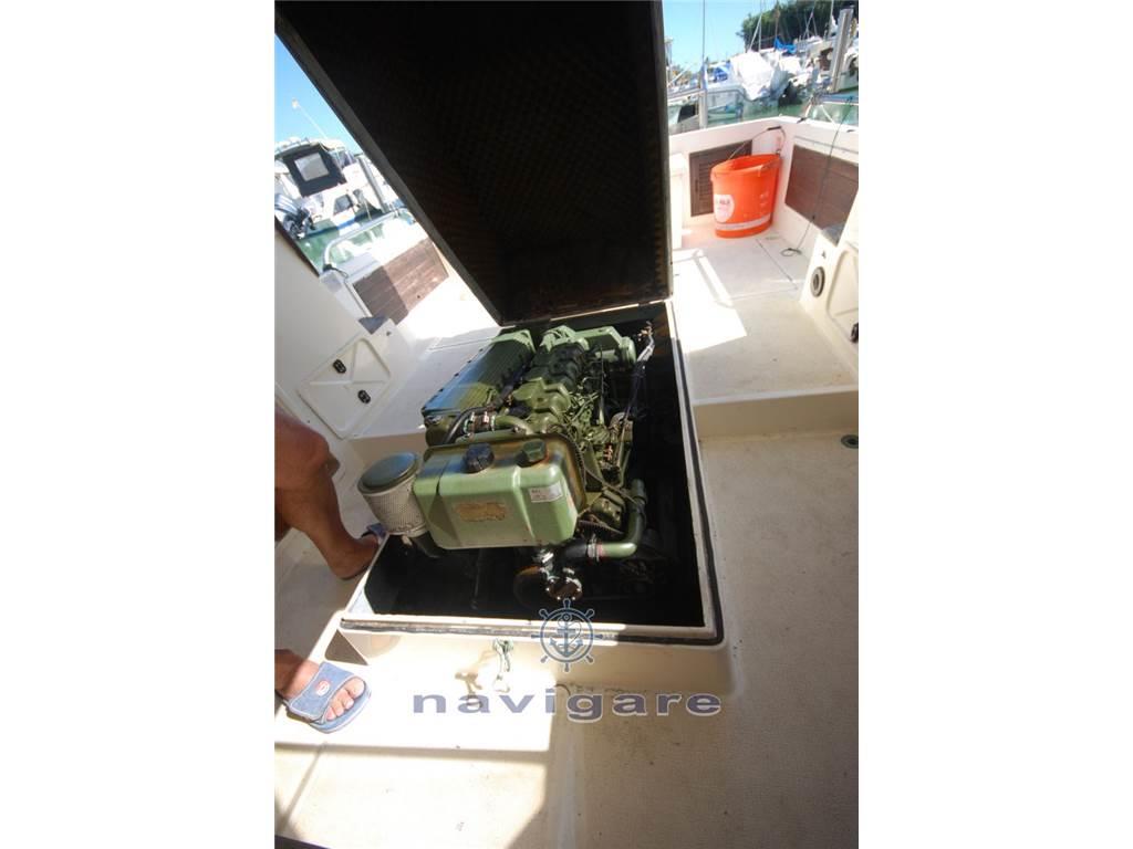 Notas internascon letto matrimoniale e guardaroba 1 bagno con lavabo, wc e doccia, stipetti e contenitori 1 cucina con piano cottura 2 fuochi gas, lavello con gruppo miscelatore, piano di lavoro, frigorifero, pensili e mobili bassi per pratico stivaggio di cambusa e stoviglie Notas de la instrumentaciónVHF snarkEco eagle Revisione 2013 Cucina 1 f Notas de armamentoINTERMARE 700 CABIN NATANTEGrande il successo di questa serie di imbarcazioni che il Cantiere Intermare ha fatto navigare nei nostri mari. questa versione cabin con ampio dal pozzetto è utilizzabile sia per piccole crociere a breve e medio raggio che per pescate sportive. il pozzetto è di dimensioni generose per questa lunghezza di barca e grazie all'ausilio di 4 portacanne ben si presta alla traina o a pesca sul fondo. Questo esemplare, mantenuto in ottime condizioni è ben attrezzato e con elettronica adeguata; la motorizzazione, parsimoniosa nei consumi, consente piacevoli ed economiche uscite in mare. |