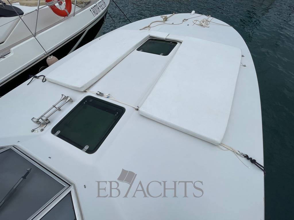 Notas internasEsterni: Gli esterni parlano da soli. L’Itama 38 ha linee essenziali, pulite, design deciso e aggressivo, ma senza arrivare all’eccesso. Carena a V profonda progressiva e una coperta comoda e ben rifinita. Grande prendisole di prua con cuscineria completa. A poppa la spiaggetta per il tender con la scaletta da bagno e passerella elettroidraulica. Il pozzetto e` composto da un prendisole di poppa con cuscineria completa, tavolo con due sedute contrapposte, la plancia di comando e l’ingresso alla zona interna a centro barca. Tutto il pozzetto e coperto da un tendalino nuovo che copre fino a poppa della barca. Interni: Entrando nella dinette troviamo la zona pranzo con tavolo e sedute trasformabile in letto per due persone, a sinistra dell’ingresso il bagno con doccia completamente ristrutturato e a seguire la cucina con piano cottura 4 fuochi a induzione, frigorifero, lavello e diversi ripiani per lo storage. La cabina armatoriale a prua con letto matrimoniale, due armadi, Casse stereo, ventilatore a parete e luci di lettura. Notas de la instrumentaciónFlaps elettriciInverter GPS (2022) ECO VHF Raymarine Stereo Sony Notas de armamentoScafo blue wrappatoMoquette in dinette e cabina di prua nuova Generatore Köhler 3.5Kw Casse stereo in dinette e cabina TV Samsung da 23" in dinette Ventilatori in dinette e cabina Tavolo in pozzetto Cucina con 4 fuochi a induzione N. 2 Frigoriferi (cucina e pozzetto) Dinette trasformabile in letto per 2 persone Cabina di prua con n.2 armadi, cassetti, ventilatore Doccia esterna Cuscineria completa Spugne nuove Coperture cuscineria di prua Bimini da navigazione (nuovo 2021) Tendalino prendisole a poppa con aste in acciaio inox (nuovo 2022) Verricello elettrico Catena nuova 75 mt Cime nuove con ammortizzatori Passerella idraulica Besenzoni (revisionata 2023) Boiler |