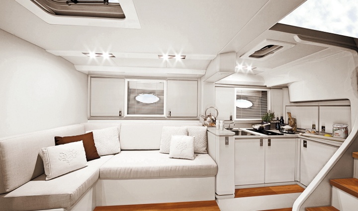 Notas internasEn dos cabinas, la dinette-se convierte en dos cómodas camas-está a la izquierda y la derecha cocina. Mientras que el segundo se inserta la cabina de popa. 1 baño con ducha Decoración: Colcha de la cabina. Propietario Colcha de la cabina. huéspedes Notas de la instrumentaciónFULL OPTIONALGPS Plotter SIMRAD 12 " Piloto automático Tridata RayMarine VHF Notas de armamentoAire acondicionado "Med" 18.000 btu/HRGenerador de 7KW Piloto automático SIMRAD Sofá-dinette Hélice de proa eléctrico externo nevera LED de iluminación de cabina en proa Bimini Top Sistema de agua negro/gris Piso de teca interior cubriendo todas las cabañas altavoces externos adicionales de alta calidad en cabina Revestimiento de la cabina de teca Persianas de madera |