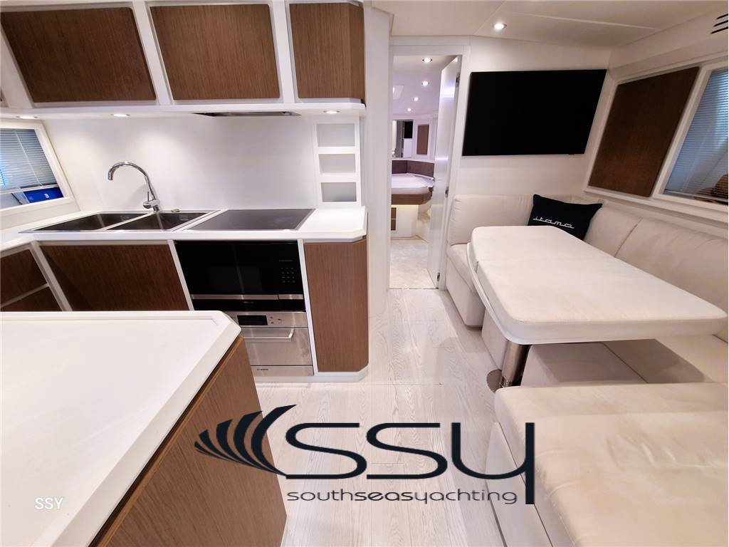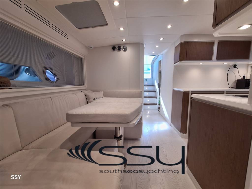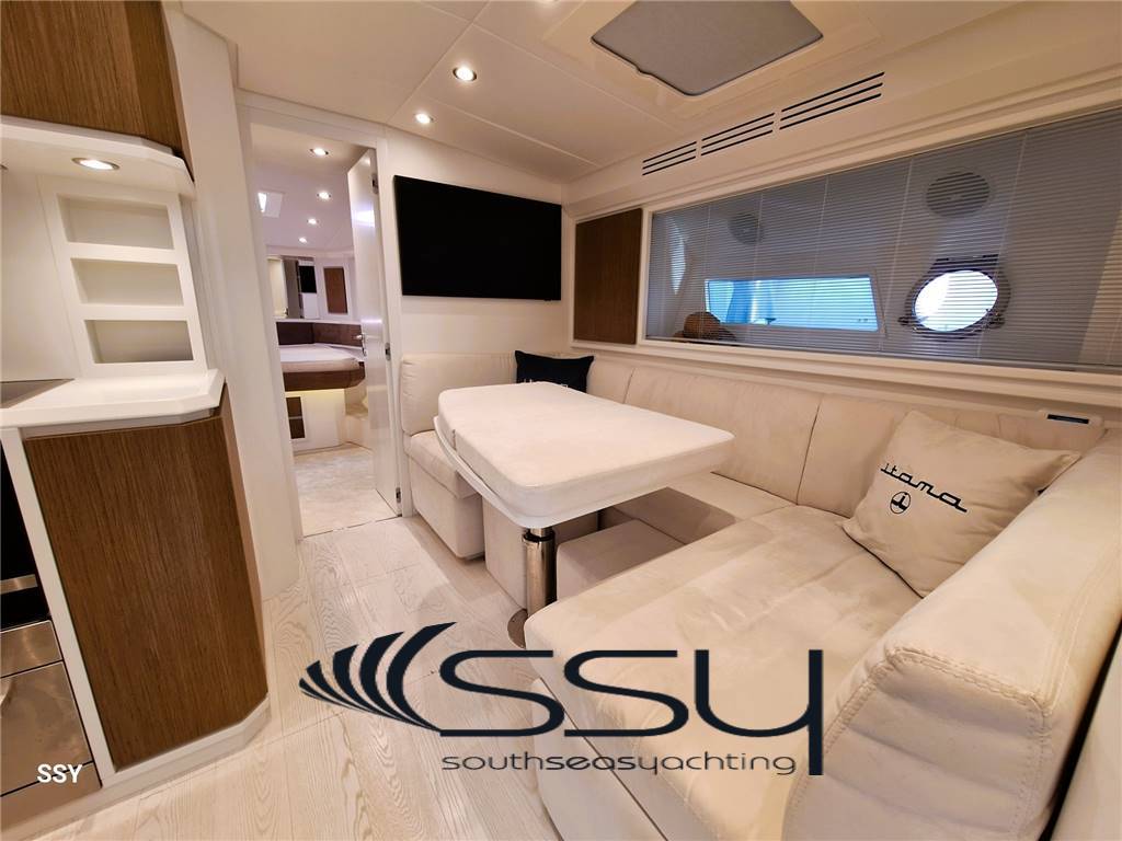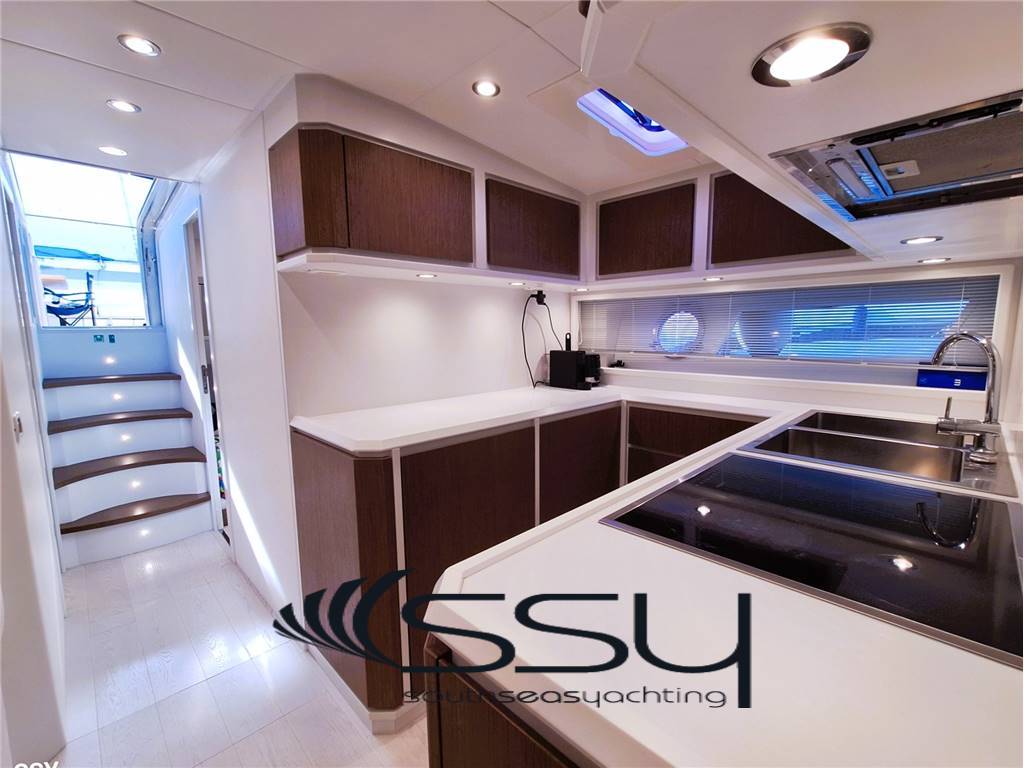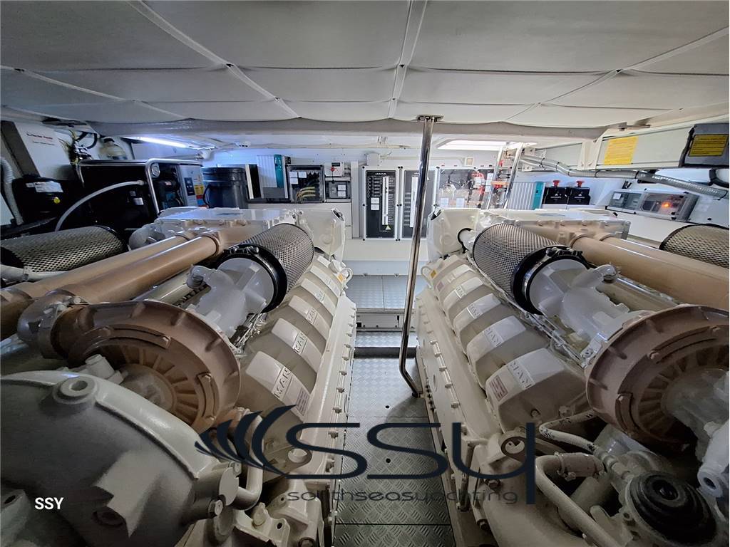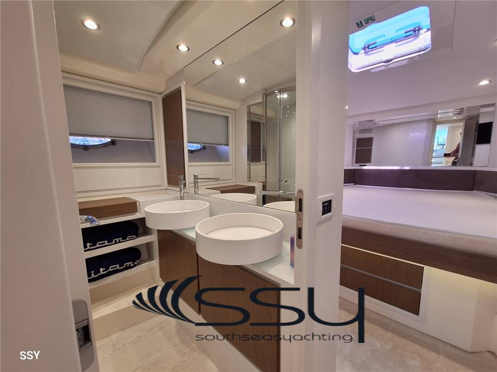Notas internas- Zona cucina contrapposta con piano cottura ad induzione Siemens, forno digitale combi Siemens, lavastoviglie Bosch (6 coperti), frigorifero & freezer Isotherm; - Cabina armatoriale matrimoniale prodiera con tende veneziane, impianto stereo Fusion MSRA770, smart TV 32’’, bagno privato con top in cristallo bianco e box doccia; - cabina ospiti matrimoniale a dritta con tende veneziane, bagno con top in cristallo bianco e box doccia; - cabina ospiti a sinistra doppia con letti in piano e tende veneziane, bagno con doppio accesso e top in cristallo bianco, box doccia; - cabina equipaggio climatizzata a poppa con ingresso e servizi indipendenti + lavasciuga. - Spacious living room with “c” sofa with retractable table, 42’’ Smart led TV, HIFI Fusion Apollo MSRA770 Sirius XM, router WIFI, venetian blinds; - opposite kitchen area with Siemens induction hob, digital combi Siemens oven, Bosch dishwasher (6 places), Isotherm fridge + freezer; - Forward master double cabin with venetian blinds, en-suite bathroom with white-crystal top & box shower + 32’’ smart led TV + HIFI Fusion MS-RA770 + safe; - starboard double guest cabin with venetian blinds and private bathroom with white-crystal top and box shower; - port twin guest cabin with venetian blinds, bathroom with double access (for daily use) with white-crystal top & box shower; - Aft crew separate air conditioned cabin with its own entrance and facilities + washer & dryer machine. Notas de la instrumentación- VHF/AIS Simrad RS100-B black box;- Simrad IS42 tridata; - 2xMultifunction Simrad NSO Evo3S 16’’ touch screen (chart plotter & engines data); - Simrad IS42 Autopilot with Simrad OP12 + OP50 keypad controller; - Digital Chain Counter MZ Electronic / contacatena digitale; - Seakeeper dash display; - Humpree (interceptor flaps) display CP502 with auto trim; - Rudder ind. Level / Ind. Angolo di barra; - SidePower bow (8.7hp) & stern (10.7hp) thrusters / elica di prua & poppa. Notas de armamento- stabilizzatore giroscopico Seakeeper 9 con display in plancia;- sistema flaps interceptor Humphree con auto trim & display in plancia; - telecamere sala macchine e prua (movimentazione ancora); - gruppo elettrogeno Fisher Panda 18XPMS 15.kw 230V/50Hz; - caricabatterie Mastervolt Mass 24/50; - inverter Mastervolt Sine Wave Mass 24/2500; - impianto A/C reversibile Dometic Condaria PCWM 7501 (30.000btu); - dissalatore Idromar C902 130lt/h con display in plancia; - passerella idraulica & tender lift Opac Mare; - tonneggio di poppa Lofrans’ 700W; - smart TV 32’’ in pozzetto a scomparsa elettricamente sotto sedile copilota; - impianto HiFi in pozzetto Fusion MS-NRX300; - mobile bar pozzetto con icemaker Vitrifrigo + frigo a cassetto Isotherm + BBQ elettrico; - bimini elettrico a scomparsa con faretti a led integrati + PVC laterali; - set completo coperture ed oscuranti + chiusura pozzetto; - router WIFI interno + 2 smart TV led (43’’ salone + 32’’ armatoriale); - impianto HiFi interno Fusion serie Apollo MS-RA770 Sirius XM; - 100mt di catena da 10mm + ancora Bruce; - bitte laterali a scomparsa; - prendisole di prua con poggiatesta; - luci subacquee a poppa; - tender Williams Turbo Jet 285. - Seakeeper 9 gyro stabilizer system with dash display; - interceptor flaps system Humphree with auto trim & dash display; - TVCC system (engine room + anchor); - Fisher Panda 18XPMS 15.kw 230V/50Hz generator; - Mastervolt Mass 24/50 battery charger; - inverter sine wave Mastervolt Mass 24/2500; - A/C system Dometic Condaria PCWM 7501 (30.000btu); - water maker Idromar C902 130lt/h with dash remote control; - Opac Mare hydraulic gangway & tender lift; - 1xLofrans aft winch 700W; - cockpit electric retractable smart Tv 32’’ under copilot seat; - cockpit Fusion MS-NRX300 HiFi system; - cockpit wet bar with Isotherm drawer fridge + Vitrifrigo Icemaker + electric BBQ; - led lighted electric foldaway bimini top + side transparent pvc; - full set cockpit awnings + cockpit closing; - inside router WIFI + 2xled smart TV (43’’ saloon + 32’’ master cabin); - inside HiFi system Fusion serie Apollo MS-RA770 Sirius XM; - 100mt chain 10mm + Bruce anchor; - side retractable bollards; - bow sunbed with headrest; - underwater led lights; - tender Williams Turbo Jet 285 |