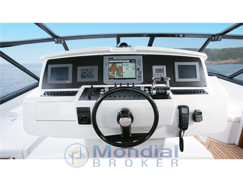 Notas internasNotas de la instrumentaciónGPSRADAR Antenna tv satellitare navisystem NT65 con decoder Cartuccia plotter Navigazione nel Mediterraneo Aggiornamento del plotter Luci di navigazione Pilota automatico Simrad Comando elettronico a leva ZF "Smart Command¿ Interruttori del motore Bussola ad alta velocità con illuminazione Display touch multifunzione (2 x 12") per sistema di navigazione (dati motori, monitoraggio, GPS, scheda plotter) Visualizzazione dei tridati Indicatore di assetto integrato nel sistema di monitoraggio Controllo del sistema di assetto Notas de armamentoAria condizionata 72.000 BTU/h "tropic" + upgrade generatore impostato a 28 kw (diff da std)Catena zincata diam.12, mt 100 (diff da std 75 mt) Convertitore 2500 con 220 v/ 24 v suppl. Elica di poppa elettrica 15 hp (doppia elica) Proiettore comandato elettricamente Luci subacquee -ciascuna Presa audio per iPhone/iPod Raymarine E120W con disp. alla televisione Tende oscuranti a movimento elettrico in tutte le cabine (esclusa cabina equipaggio) Cabestano aggiuntivo 1200w |