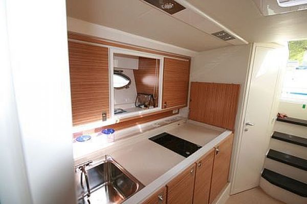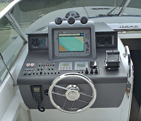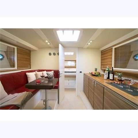 Notas internasCamarote de proa con cama doble para completar el espejo, cajones y armario de la penÃnsula. Media cabina con Cruz-camas y armario, un gran cuarto de baño con ducha, inodoro y lavabo gabinete eléctrico. Cocina a la derecha, grande, funcional y con todo lo necesario. Comedor con sofá y mesa plegable en el centro del barco Notas de la instrumentaciónGPS plotter, piloto automático, sonda, vhf, ángulo del timón, flaps, tv, esposas estéreo, electrónicasNotas de armamentoPasarela hidráulicaHélice de proa Plataforma de baño de gran tamaño Báscula de baño Molinete eléctrico Bimini top Nevera con barra británicos en la cabina Azul y casco blanco Limpieza de cadena Sistema contra incendios Amortiguadores al aire libre completas Luces de cortesÃa |