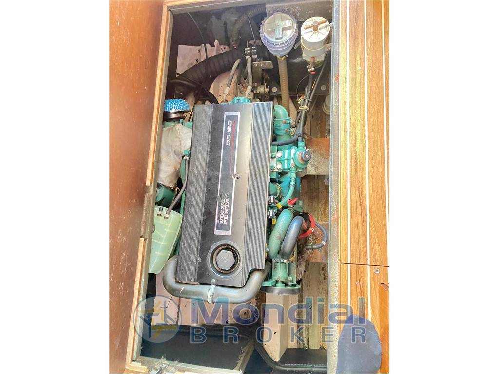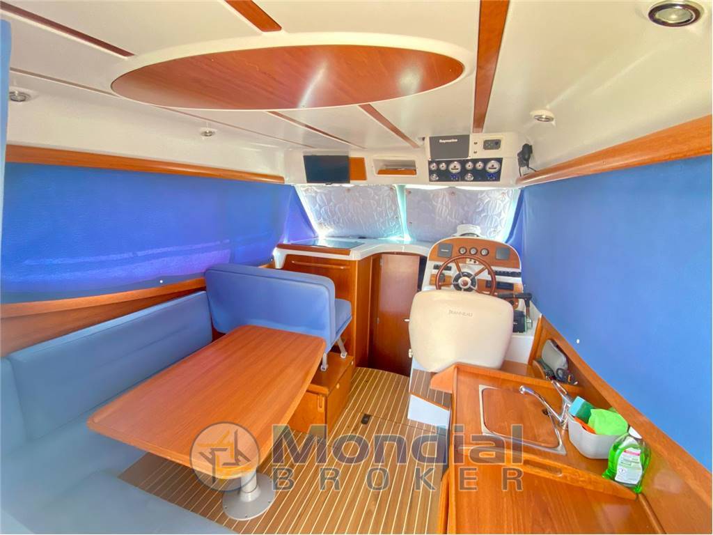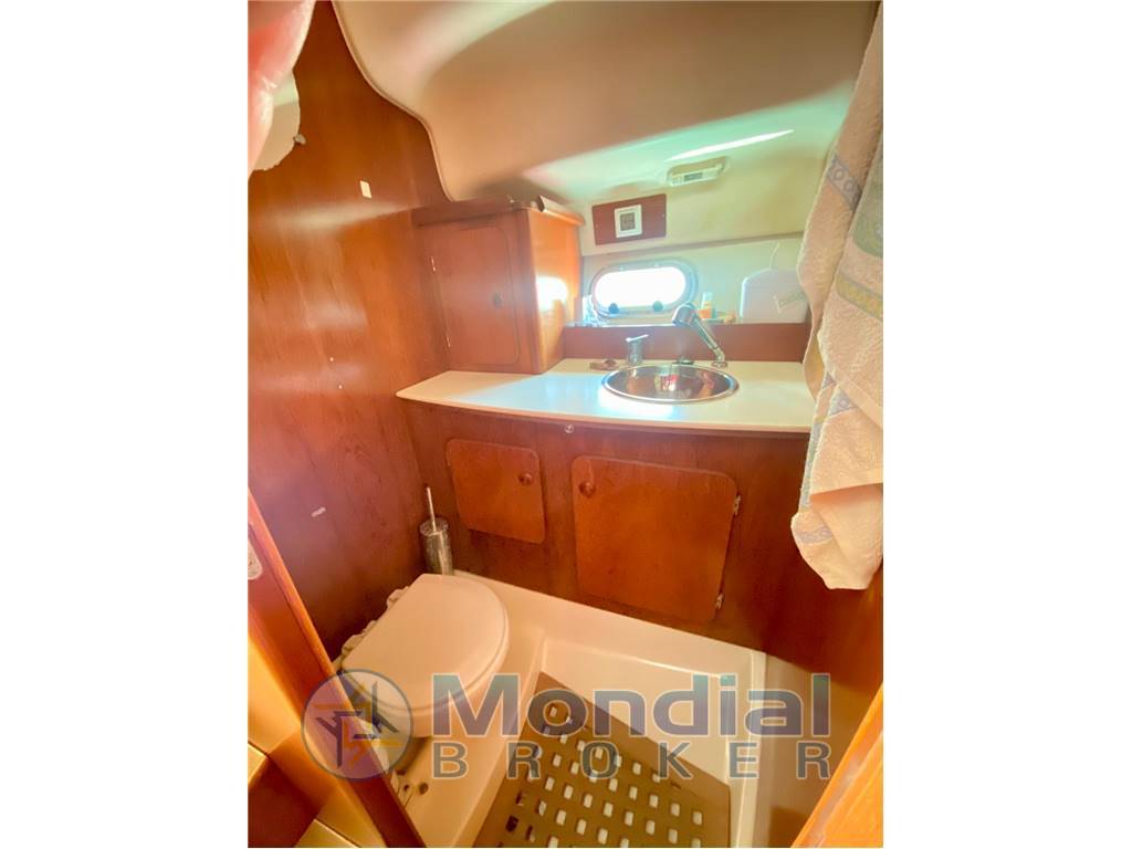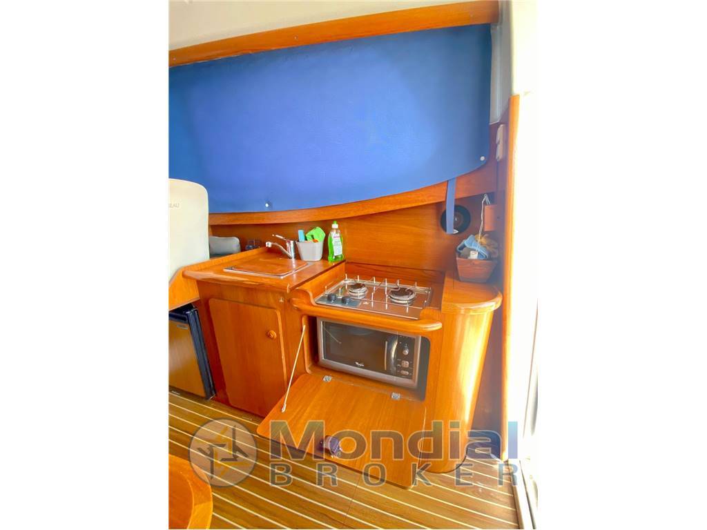Notas internasInterni in legno color ciliegio, entrando sulla murata di dritta troviamo un mobile che aprendolo vi è una cucina composta da: 2 fuochi, un lavello, un frigorifero ed alcuni armadietti per lo stivaggio di cambusa e stoviglie. Di fronte un divano a U con in mezzo un tavolo che può ospitare 6/8 commensali. scendendo 2 gradini sulla dritta una cabina ospiti e a sinistra il bagno a prua la cabina armatore.