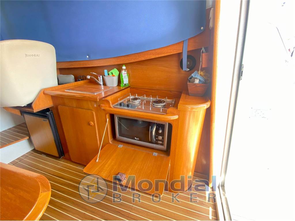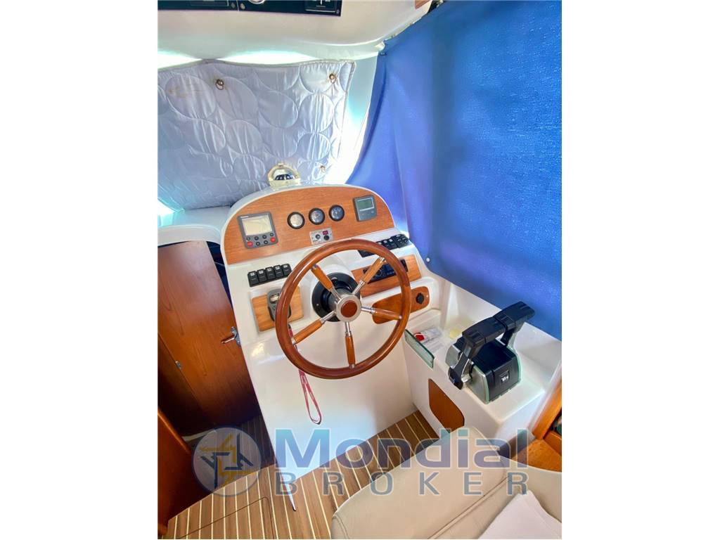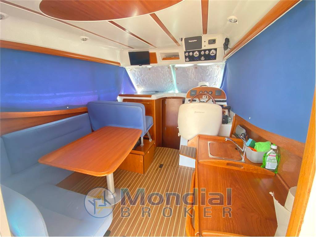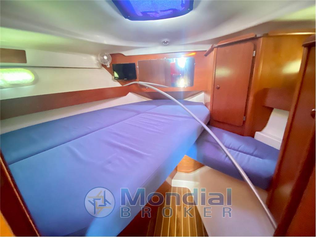 Notas internasInterni in legno color ciliegio, entrando sulla murata di dritta troviamo un mobile che aprendolo vi è una cucina composta da: 2 fuochi, un lavello, un frigorifero ed alcuni armadietti per lo stivaggio di cambusa e stoviglie. Di fronte un divano a U con in mezzo un tavolo che può ospitare 6/8 commensali. scendendo 2 gradini sulla dritta una cabina ospiti e a sinistra il bagno a prua la cabina armatore.