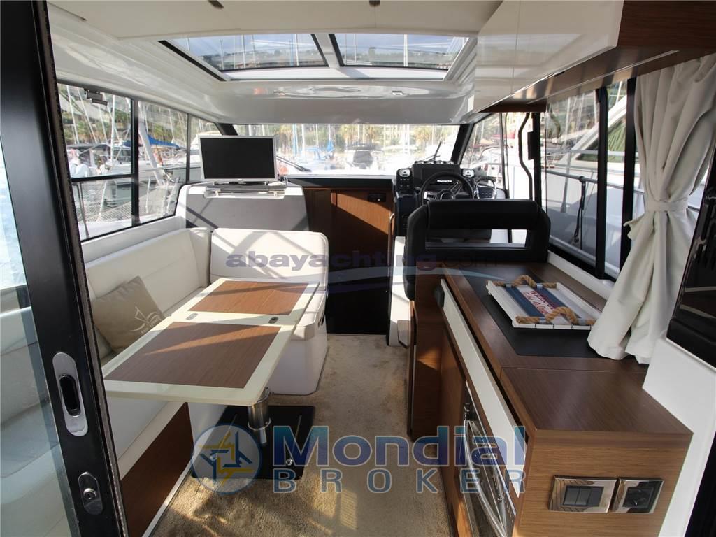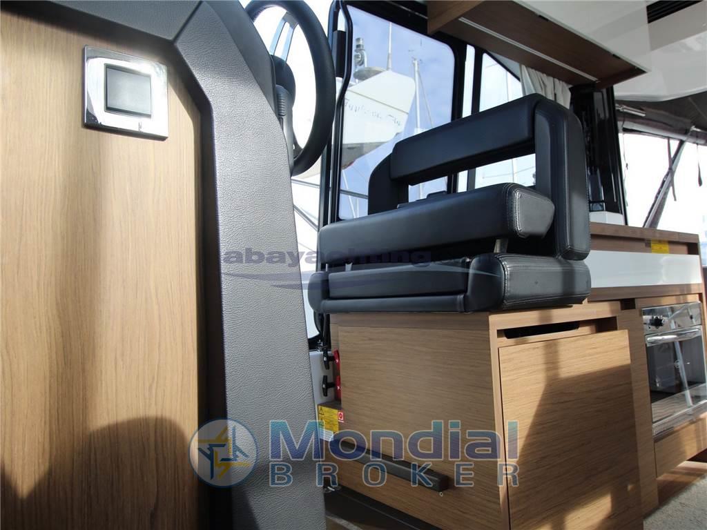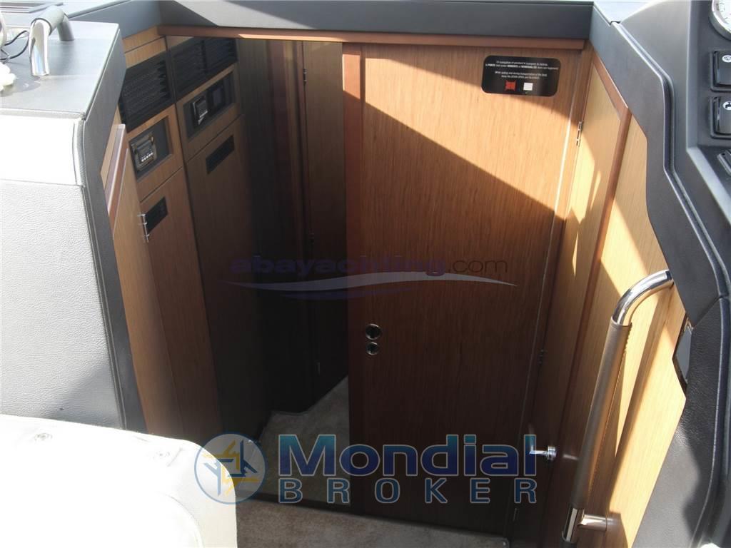 Notas internasNotas de la instrumentaciónAngolo barra, Bussola (Plastimo), Comando motori elettronico, Joystick, Log (Sul plotter), Plotter con antenna GPS (Axiom 9"), Radio VHF (Ray90).Notas de armamentoAllestimento tecnico e di coperta:Allarme motore, Ancora (16 kg), Colorazione speciale (Grigio chiaro), Doccia esterna (Caldo / Freddo), Elica di prua - bow thruster, Flap elettrici, Impianto antincendio (sala macchine), Indicatori Flaps, Luci di cortesia (Pozzetto), Passerella (Besenzoni), Piattaforma, Pompa di sentina elettrica, Pompa di sentina manuale, Porta ingresso, Porta laterale, Pozzetto Teak, Presa 220V banchina, Presa acqua banchina, Salpa Ancore Elettrico, Scaletta da bagno, Tavolo pozzetto (Amovibile), Tromba. Dotazioni domestiche di bordo: Aria condizionata (Caldo/Freddo. 3 gruppi separati), Prese interne 12v, Prese interne 220v, Serbatoio Acque Nere, WC marino elettrico. Intrattenimento: Altoparlanti, Stereo. Cucina ed elettrodomestici: Cucina (Gas 2 fuochi), Forno (Gas), 2 Frigorifero interno. Tappezzerie: Copripozzetto (Coperture trasparenti 2023), Cuscineria di prua, Cuscineria Pozzetto, Teli copri finestra (parabrezza), Tendalino (Estivi retinati). |