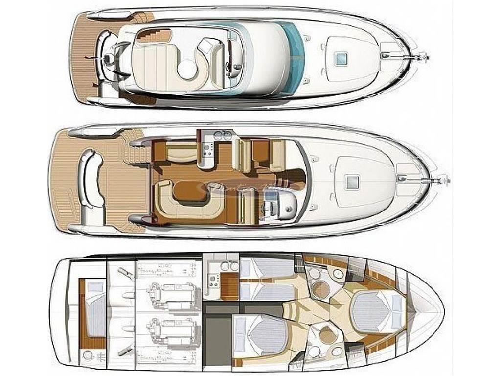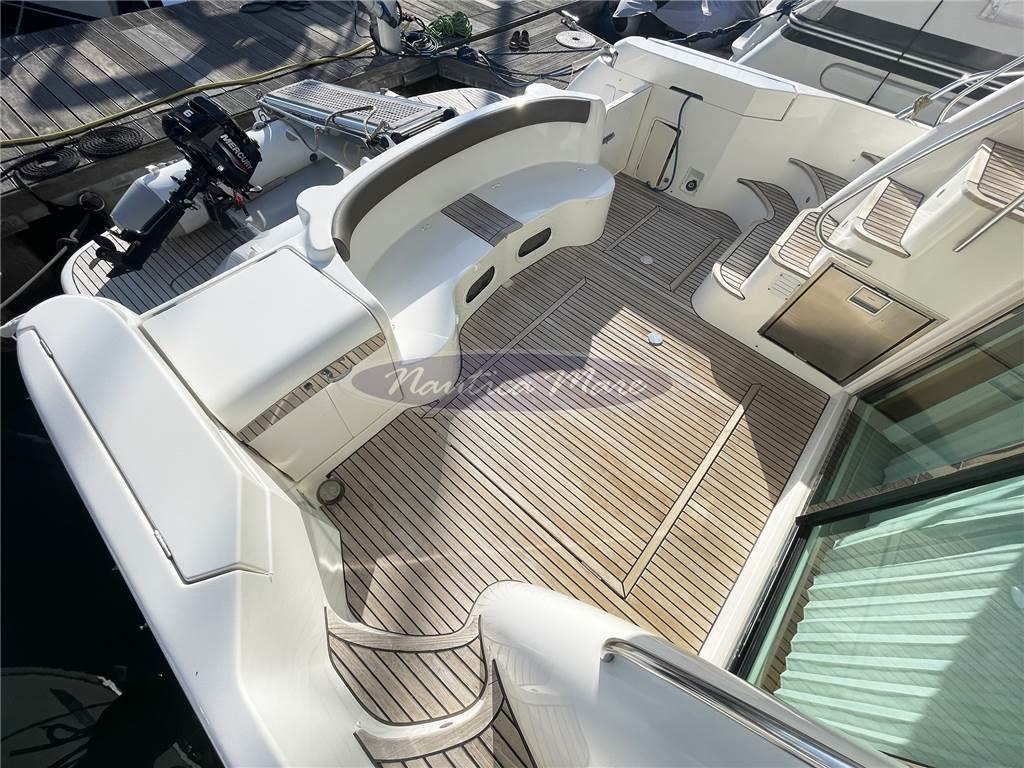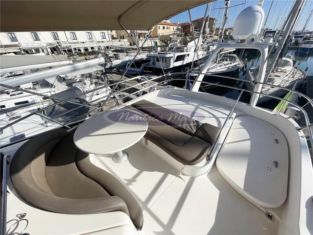 Notas de armamentoAltoparlanti, Antenna Satellitare TV, Aria condizionata (in tutte le cabine + salone), Boiler, Clima reversibile, Congelatore, Copripozzetto, Cucina (con doppio lavandino), Cuscineria completa, Cuscineria di poppa, Cuscineria di prua, Cuscineria fly, Cuscineria Pozzetto, Decoder satellite, Dotazioni di sicurezza entro 12 miglia, Fornello (a gas 3 fuochi), 2 Frigorifero esterno (pozzetto + fly), Frigorifero interno (+ ghiacciaia), Ghiacciaia, Impianto acque nere, Impianto TV, Inverter, Microonde, Oscuranti, Pavimento interno in legno, Prese interne 12v, Prese interne 220v, Radio AM/FM, Riscaldamento, Serbatoio Acque Nere, Stereo, Teli copri finestra, Tendalino (pozzetto + fly), 3 TV, 3 WC marino elettrico (compreso cabina marinaio)