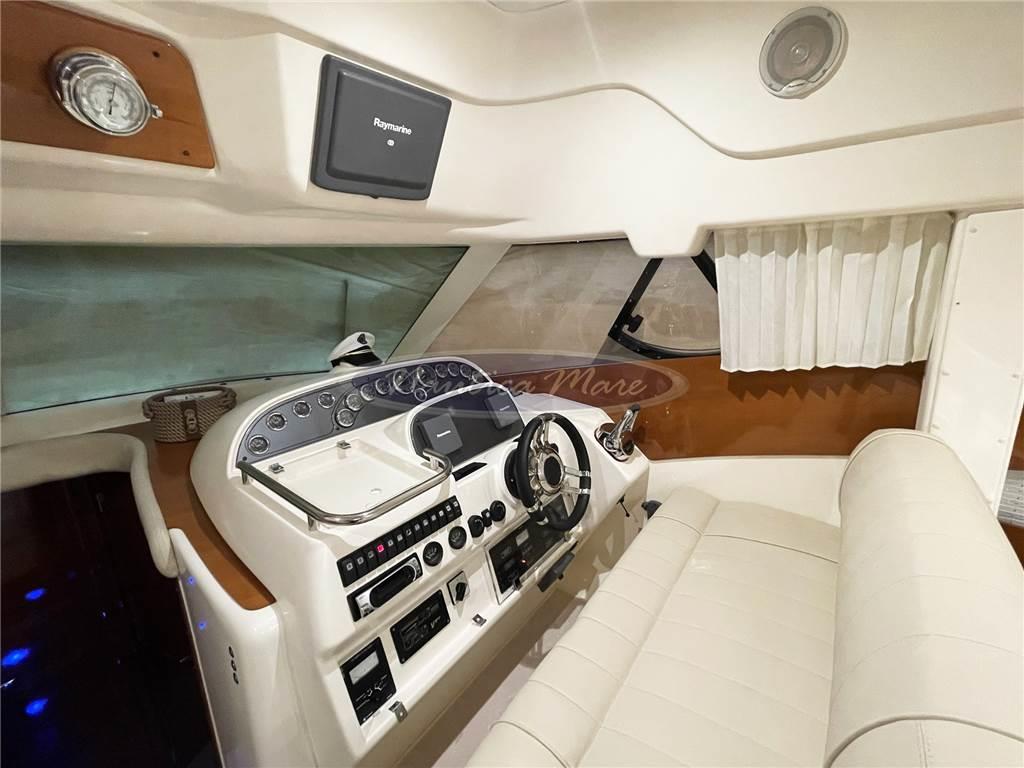 Notas de la instrumentaciónAllarme motore, Ancora (Bruce 12,5 kg + 50 mt. catena), Angolo barra, Autoclave, Autogonfiabile, 10 Batterie (motori + servizi + elica di prua + generatore), Bussola, Caricabatterie (Quick), Comando motori elettronico, Computer di bordo, Doccia esterna (con miscelatore c/f), Doppia timoneria (sul fly con strumentazione completa), DSC vhf, Ecoscandaglio (Raymarine), Elica di prua - bow thruster, Faro orientabile (di profondità), Flap idraulici (Bennett), GPS (Raymarine E120), Impianto antincendio, Indicatori Flaps, Lavaggio catena, Luci di cortesia (Led), Passerella (Besenzoni), Piattaforma (maggiorata), Pilota automatico (ST6001), Plotter con antenna GPS, Pompa di sentina automatica, Pompa di sentina elettrica, Pompa di sentina manuale, Porta ingresso, Pozzetto Teak, Presa 220V banchina, Presa acqua banchina, Radio VHF, Ripetitore strumentazione (sul fly), Rollbar (vetroresina sul fly per antenne), Salpa Ancore Elettrico, Scaletta da bagno, Tavolo pozzetto, Tender (chiglia pneumatica + motore 6 hp), Tromba, Winch tonneggio di poppa (lato sinistro), Winch tonneggio di prua