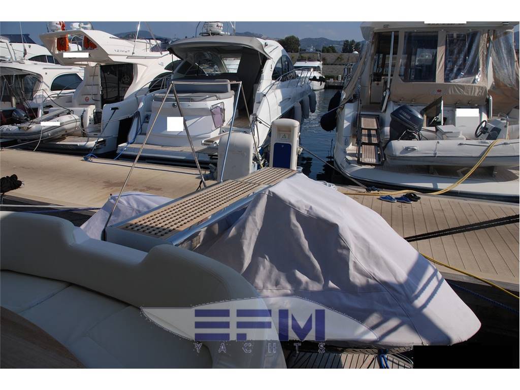 | Caratteristiche costruttive Carena: a V profondo con pattini di sostentamento, in vetroresina laminata in pieno con rinforzi strutturali longitudinali e trasversali. La barca è disegnata al computer con uno speciale software proprietario, il Dassault Systems’ Catia - Costruzione e strutture Le fiancate e le strutture sono in sandwich di vetroresina - Coperta: in sandwich di vetroresina - Zona di prua: un prendisole ampio è situato al centro con due tientibene di sicurezza laterali. La battagliola,leggermente aggettante, lascia molto spazio sul ponte, in prua si interrompe nella sua parte più alta. Porta-parabordi inox sono situati ai due masconi - Pozzetto: pontato in teak, è attrezzato con un divano doppio che crea la murata di poppa con passaggio centrale alla passerella idraulica. Sotto il divano è sistemata la cabina marinaio con bagnetto, il cui accesso è rappresentato da un tambuccio sulla dritta. Ai giardinetti sono presenti due postazioni d’ormeggio, quella sinistra con verricello di tonneggio. I due passavantiche portano a prua non sono eccessivamente larghi, ma sono protetti da battagliole inox e da tientibene sulla tuga. Sulla dritta, appoggiata alla tuga, è situata la scala che porta al fly - Plancetta poppiera: è decisamente ampia e pontata in teak, sulla sinistra un portello chiude per sicurezza il passaggio al pozzetto. Un gavone al centro permette di riporre attrezzature da snorkeling e la scaletta bagno è a scomparsa |