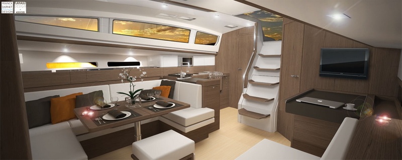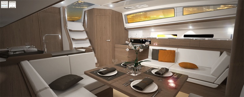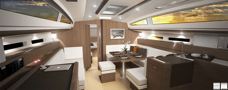 GAMA de 2013: el nuevo 44DS de Sun Odyssey es una verdadera revolución. La combinación de casco diseñado por Philippe Briand y el diseño de interiores y el puente firmado Franck Franck Darnet & Flahault diseño ha resultado en un barco no sólo agradable para conducir, pero también extremadamente cómodo. Todas las hojas llevan a popa para el timón de dirección, a hacer la vela plan fácil maniobrar incluso en pequeña tripulación. Diseñador: Franck Franck Darnet-Philippe Briand Flahault diseño-Jeanneau design |