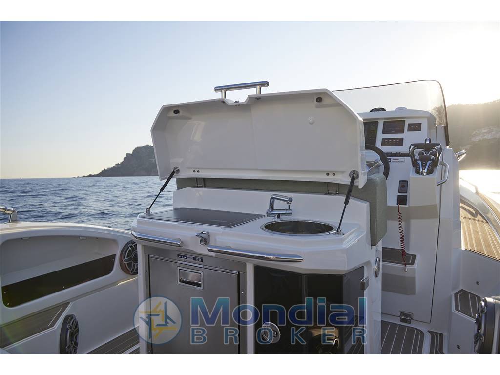 Notas internasIl Joker Boat Clubman 32 è un gommone di 9,50 metri che rappresenta l'evoluzione del popolare Clubman 30, combinando prestazioni elevate, comfort e versatilità. Ideale per famiglie e appassionati di nautica, offre un'ampia gamma di personalizzazioni e soluzioni per ogni esigenza.? Con una motorizzazione fino a 800 CV, il Clubman 32 è in grado di raggiungere velocità superiori ai 50 nodi, offrendo emozioni forti e una navigazione fluida anche in condizioni di mare mosso. Fornisce un ampia possibilità di personalizzazione, sia per gli interni che per gli esterni, dando disponibilità di quattro diverse combinazioni di colori e tessuti per mobili, paratie e componenti varie, consentendo all'armatore di creare un ambiente unico e su misura, inoltre per il Clubman 32 si è fortemente voluta una nuova carena, più profonda di quella del Clubman 30 e leggermente più larga e lunga, al fine di ottimizzare lo spazio e ottenere una maggiore altezza in cabina pur mantenendo le qualità di navigazione di tutti i Joker Boat. In aggiunta, grazie alle vetrate nello scafo, il designer è riuscito a massimizzare la luce naturale aumentando la percezione dello spazio e creando un ambiente gradevole e tutt’altro che claustrofobico. |