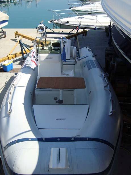 Notas internasNotas de la instrumentaciónFISHFINDER Garmin C 550Notas de armamentoArco sol cojines, luces de navegación + 360 luz, Faro profundo (600 m), brújula, 3 luces de la cabina, encendedor de cigarrillos del zócalo, 2 bombas de achique automáticas, 6 cañeros, equipo de seguridad a bordo cumple dentro de 12 millas, 8 salvavidas, toldo, cubierta del barco, carro de carretera homologado ELLEBI. |