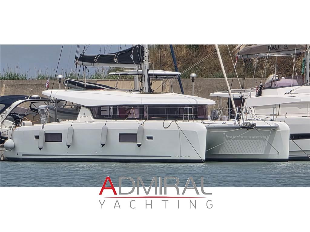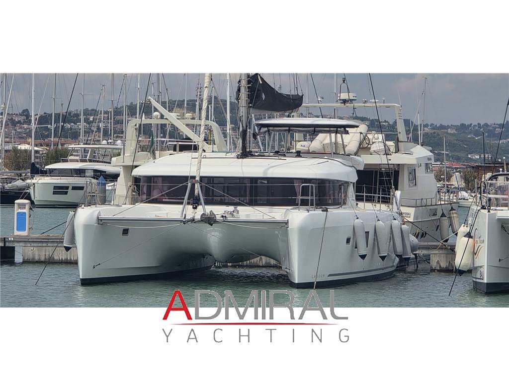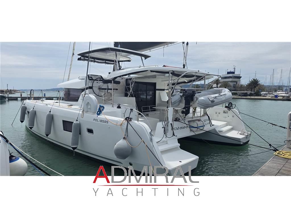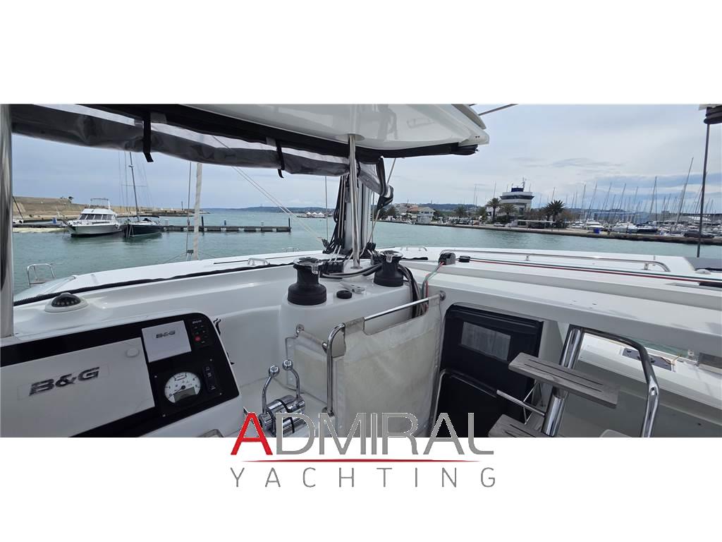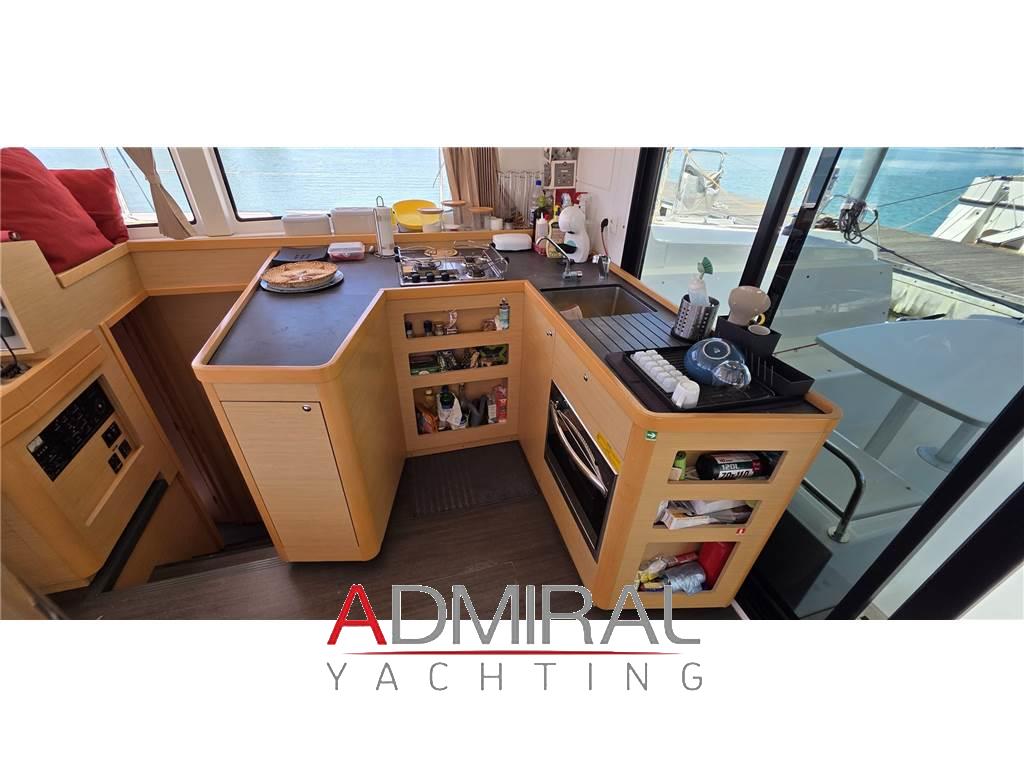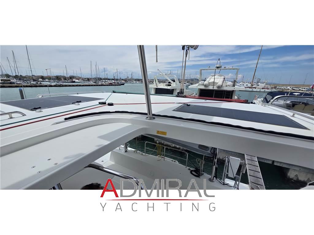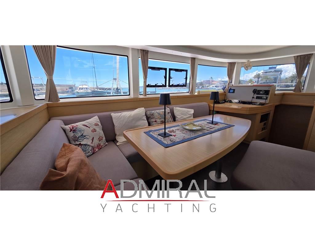 Notas internasVersione 4 cabine / 4 bagni / cabina equipaggio Cucina con piano cottura 3 fuochi, frigo, forno, frigo a pozzetto Divano in tessuto grigio con tavolo Piano con TV Pavimentazione in wengé