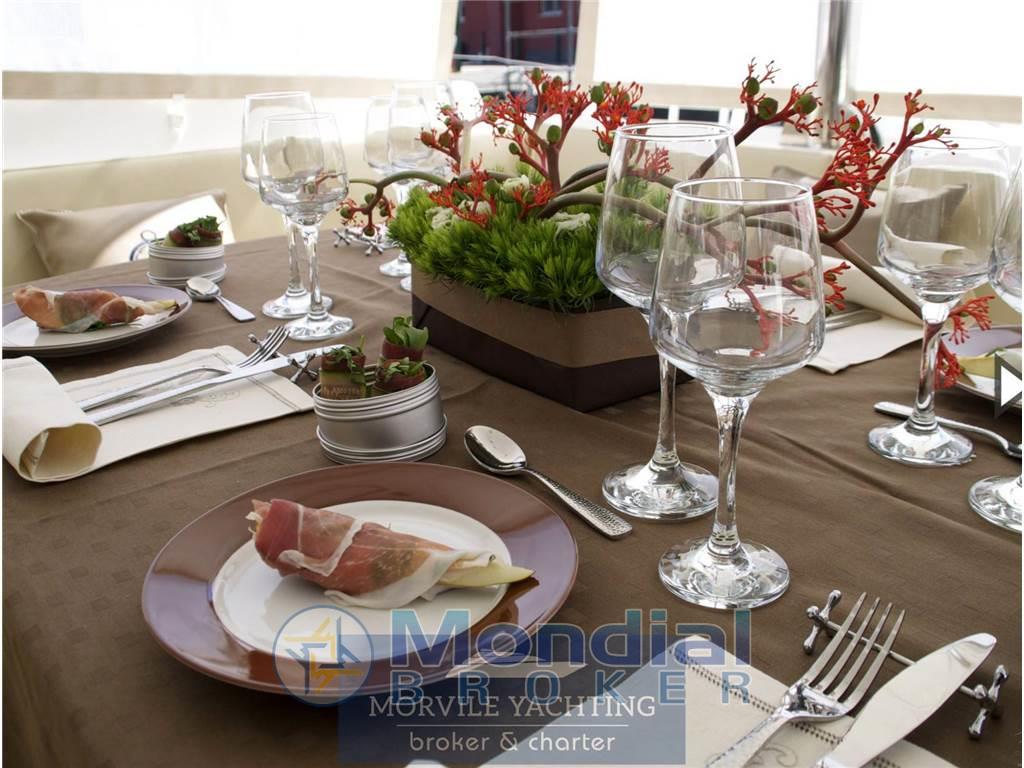 Notas internasBAGNI 4 + 2 CABINE EQUIPAGGIO CON BAGNO Bagni: 4 Cabine: 4 Notas de la instrumentaciónVHFGPS ECO BUSSOLA Pilota automatico Baromentro Bussola Contamiglia Ecoscandaglio GPS GPS-Plotter Log Vhf Notas de armamento |