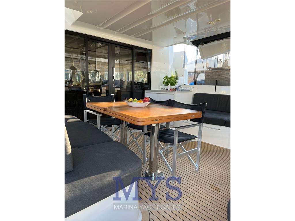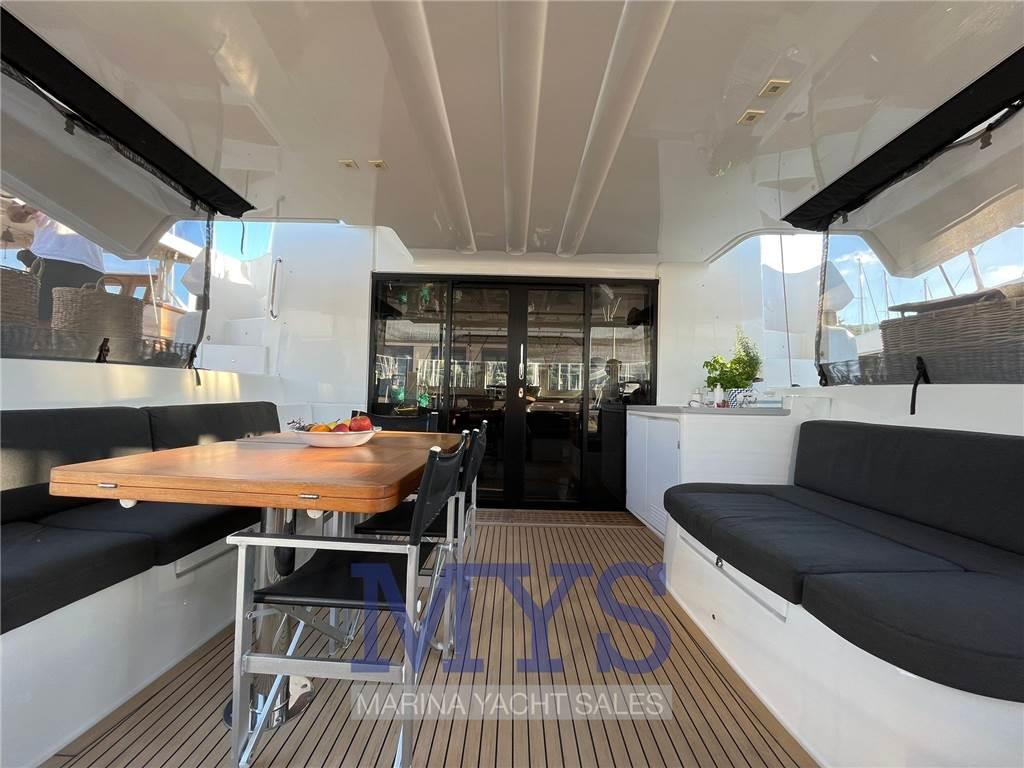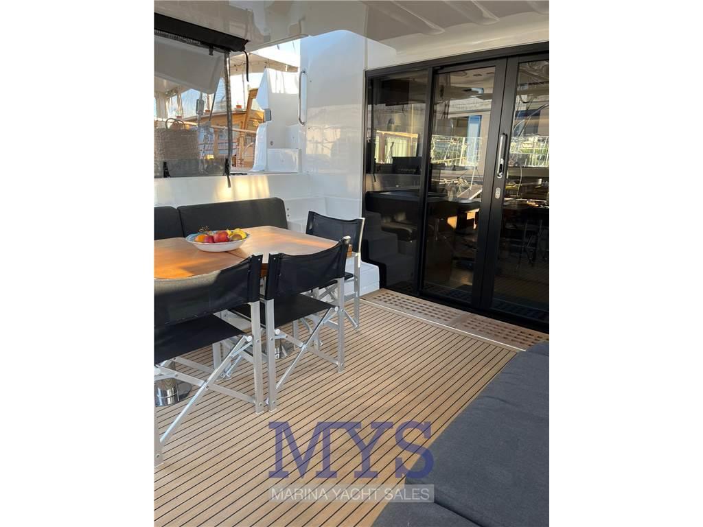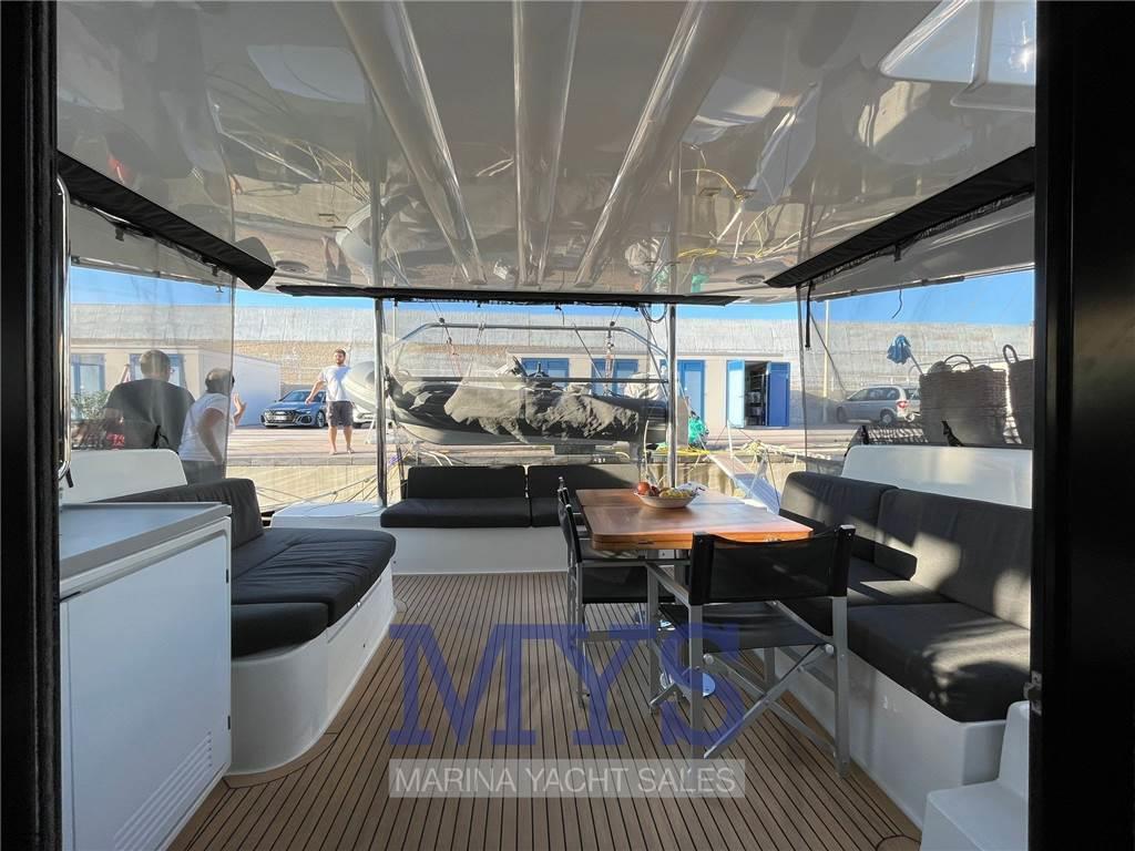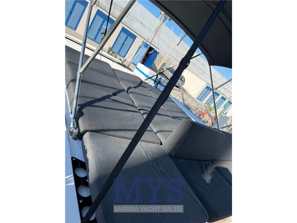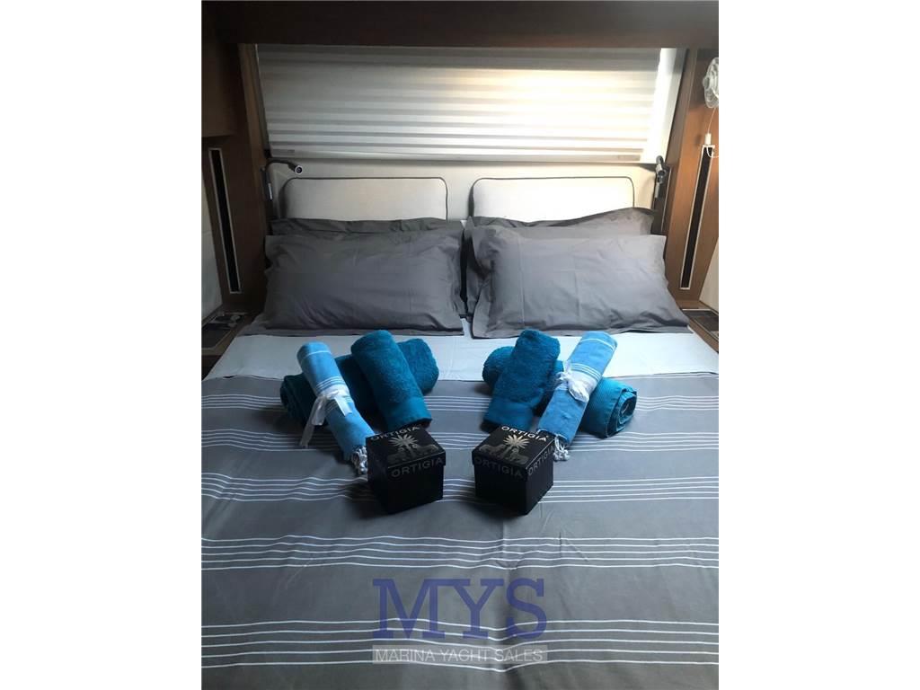 Notas internasRivestim in tessuto, accessori in cuoio e inox in testata letto e su i comodini, rifinitura in cuoio nella biblioteca e sui ripiani del salone, rifinitura grigia x mobili cucina, rifinitura Corian x la doccia 3 Cabine sul lato sinistro, 2 nel lato destro Cabina supplementare al centro scafo di sinistra con letto doppio Dinette con divano e tavolo da pranzo trasformabile in letto Cucina completa di fuochi a gas, forno, frigorifero e lavastoviglie Miele 6 coperti 220V Pavimento interno in legno Notas de la instrumentaciónAIS B&G 500 TRASMETTITORE / RICEVITOREBussola Pack Navigation B&G 2018 GPS ZEUS 12" AL TAVOLO DA CARTEGGIO CARTA EUROPA GPS ZEUS 12" ALLA TIMONERIA ECOSCANDAGLIO B&G VISIONE IN AVANTI Log RADAR B&G 4G, CON PROTEZIONE INOX Pilota automatico TELECOMANDO PILOTA B&G Comando motori elettronico VHF B&G RS90 E DOPPIA POSTAZIONE CON ASN Salpancora Elettrico Contamentri catena Presa 220V da banchina 2 Caricabatterie 60A e 40A INVERTER 12 / 220V - 2000W Prese interne 12v Prese interne 220v Prese Usb nel salone e nelle cabine ANTENNA TV Luci di cortesia Altoparlanti Stereo Fusion 70 + 6 altoparlanti nel salone, nel pozzetto e sul fly VENTILATORI PER SALONE E CABINE Aria condizionata CLIMATIZZATORE CRUISAIR 64000 BTU 220V CLIMATIZZATORE CRUISAIR 3500 BTU 220V NELLA quinta cabina Clima reversibile CONGELATORE 110 L NEL CORRIDOIO CONGELATORE 110 L NEL SALONE Autoclave Boiler per l'acqua calda Impianto acque nere Serbatoio Acque Nere DISSALATORE HP 230LT/H Presa d'acqua dolce in banchina Serbatoi acqua supplementari SX e DX 2 x 175 L Pompa di lavaggio ponte acqua di mare/ acqua dolce Passerella idraulica Notas de armamentoAncoraTendalino Cuscineria completa "DARK GREY" Cuscineria di poppa Cuscineria di prua Cuscineria fly KIT DI COPERTURE "GRAPHITE" (Ruota timone, Console della timoneria) Sprayhood alla timoneria Teli parasole Pulpiti di prua con sedili in legno VETRATA SCORREVOLE SULLA PARTE AVANTI DELLA TUGA Porta ingresso scorrevole Pozzetto in Teak Tavolo pozzetto Doccia esterna Scaletta da bagno Sistema di sollevamento tender in inox e winch manuale Randa square top Fiocco Avvolgi Fiocco Sartiame spiroidale Winch elettrico per manovre destra 50.2STAEH |