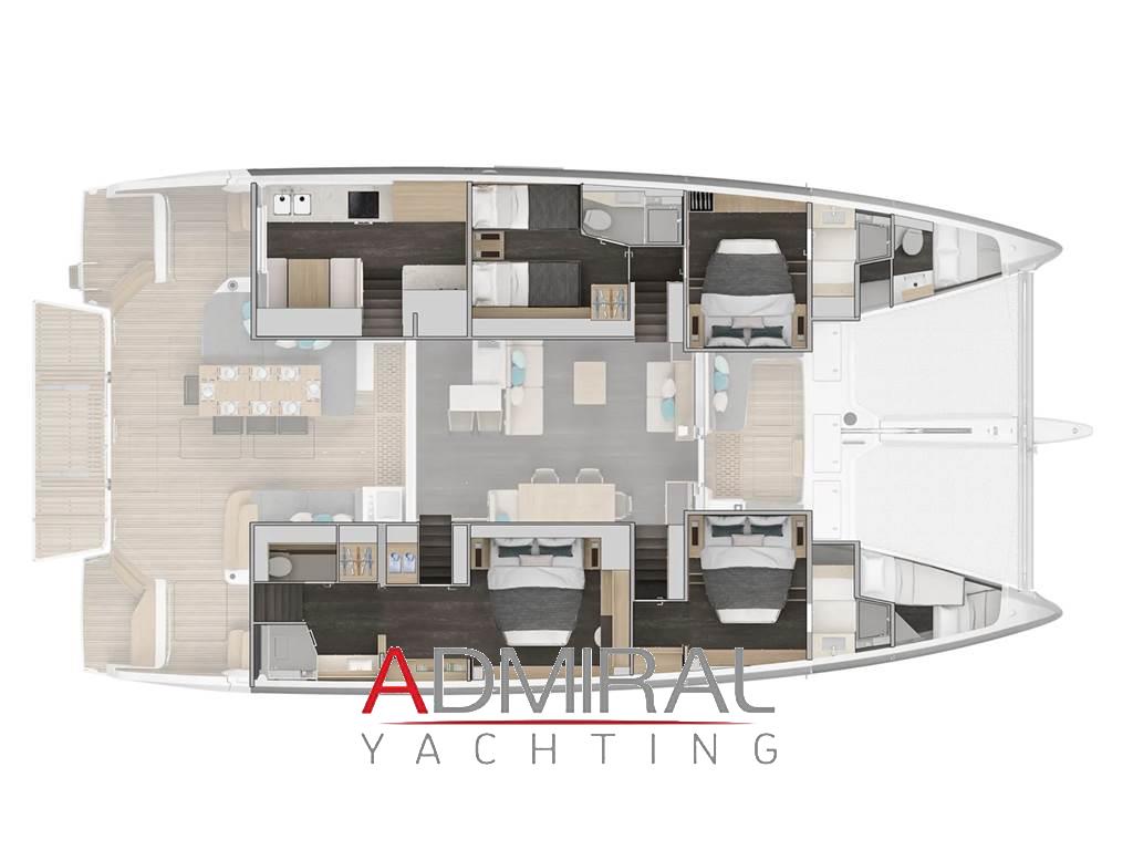 NUOVO MODELLO - CONSEGNA MAGGIO 2025 SCAFO GELCOAT GRIGIO E COPERTA IN TEAK VERSIONE ARMATORIALE 4 CABINE CON CUCINA SEPARATA SOTTO COPERTA 2 CABINE E |