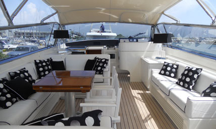 En 2005 el barco fue sometido a un GENERAL vuelva a colocar por OVERMARINE y en 2012/2013 fueron realizó varios especiales mantenimiento: plataforma de popa de teca y nuevo sol área TOTAL repintado de pulido de la lÃnea azul en el lado CHECK y arreglo de motores/grupos. DE TALLER |