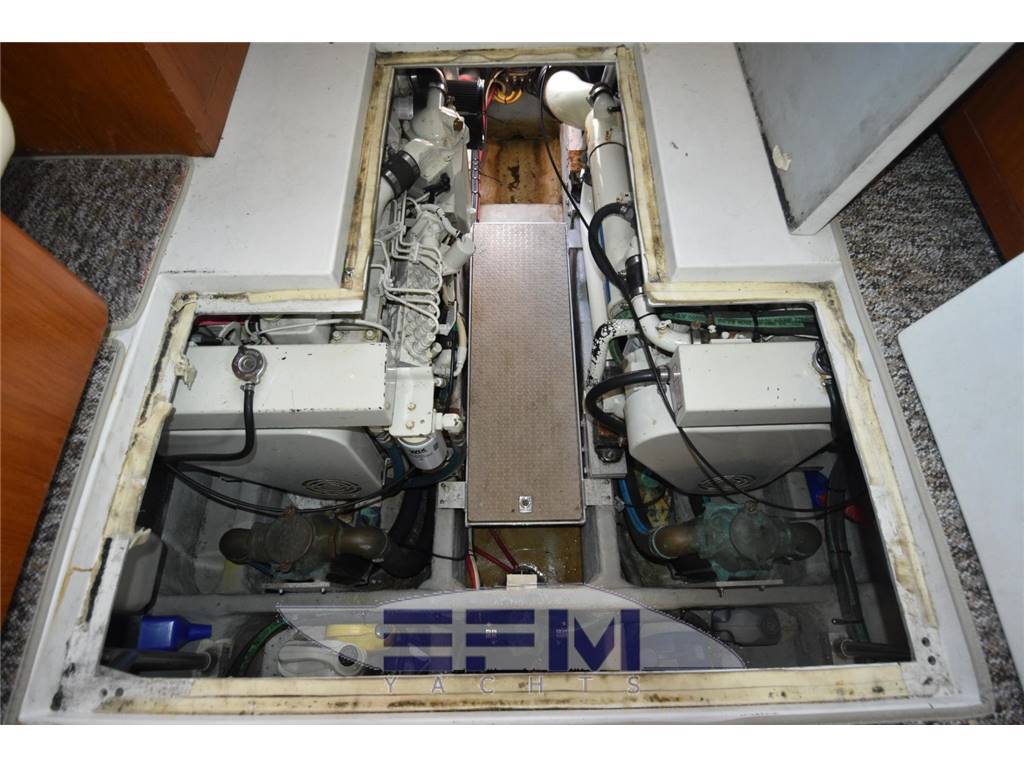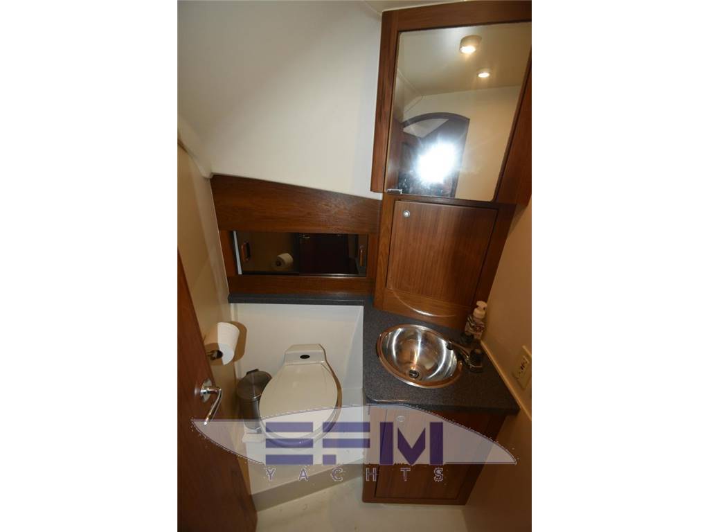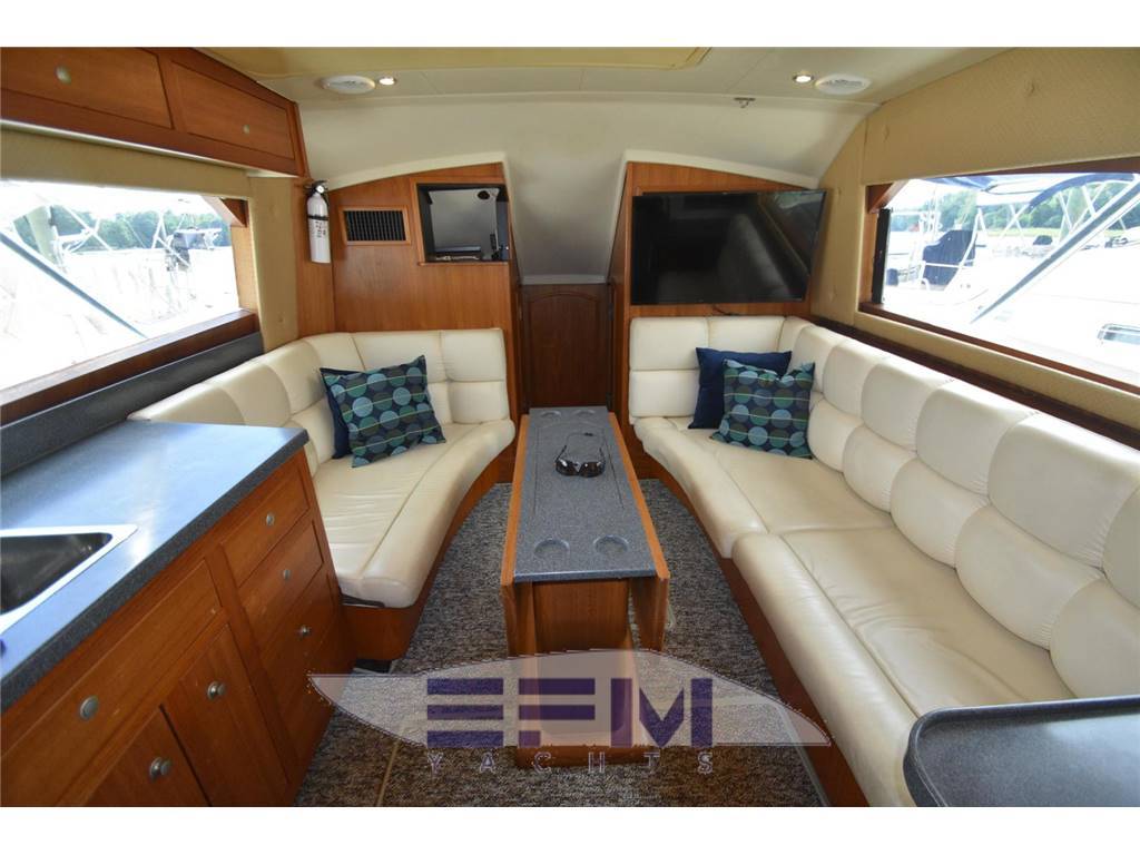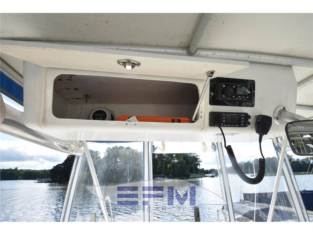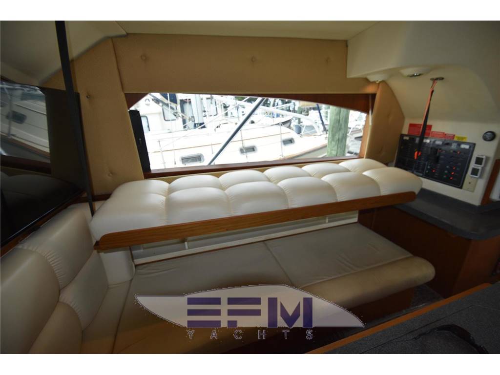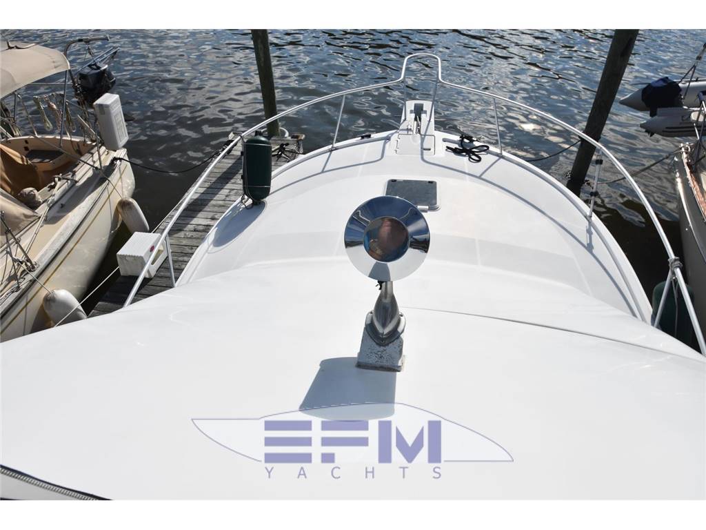 Notas internas-All interior lighting has been changed to LED fixtures -12,000 btu Reverse Cycle Heat/Air Conditioning System -Lockable salon door -New interior carpeting -Satin Teak interior cabinetry, very nice condition -Stbd side AC/DC Breaker panel -Remote Generator control panel -Stbd side Salon Sofa with pull-up backrest (making for upper and lower sleeping bunks -Rod Storage located behind the Sofa backrest -Overhead Rod Storage located in the ceiling of the salon -37 inch Flat Screen SmartTV located in stbd forward of the Salon -Port side sofa with storage beneath -High/Low Salon Table with drop leaves (has a weighted bottom, easily movable) Port side Galley: -Corian countertop -Upper and lower Satin Teak cabinets -GE Turntable microwave oven -NovaKool Undercounter Refrigerator/Freezer with teak face -Stainless steel double sink -Combination faucet -Princess 2 burner electric stove -Black & Decker Spacemaker Coffee maker Lower Cabin: -3 steps down to the lower cabin (Steps raise to provide access to the Pump/Mechanical Room) -Forward Master Cabin -Double Bed, on the angle -(3) large drawers beneath bed -Stbd side hanging locker (closet) -8,000 btu Reverse cycle Heat/Air Conditioning system for master cabin -Vizio 27 inch SmartTV -JVC Stereo -Upper Storage shelves (upholstered) -Overhead lighting (LED lights) -Overhead hatch and screen -Built in night stand with storage beneath Head and Shower is a Wonderful use of space. -Stbd side enclosed head with Vac-U Flush toilet, Stainless steel sink, medicine cabinet, storage beneath sink, privacy door -Port side Shower, with a shower curtain, shower wand and seat -The shower space also has a stainless steel sink with medicine cabinet Notas de la instrumentaciónEngines:-twin Cummins Diamond Series, model 6BTA5.9, 370 hp each (450 original hrs) -(2) New Raw water pumps. Summer 2022 -Complete Oil and Filter service, Summer 2022 -Engine Zincs replaced, Summer 2022 -ZF Marine Transmissions -Dripless Shaft Seals GENERATOR: -Kohler 8 kw diesel powered generator, located in Sound Shield (175 original hours on generator) -Remote start/Stop control panel located in salon -New raw water impeller, Summer 2022 -Engine Generator and House Batteries replaced, Summer 2022 -ProMariner ProNautic 12-40p Smart Charger, Installed Summer 2022 -Generator Impeller changed, Summer 2022 MECHANICAL EQUIPMENT: -12,000 btu Reverse cycle Heat/Air Conditioning unit for Salon -8,000 btu Reverse Cycle Heat/Air Conditioning unit for Lower Cabin -Reverso Oil Change System -Stainless Steel 6 gallon water heater (new Spring 2022) -Automatic Fire Suppression System FLYING BRIDGE AND ELECTRONICS: -Molded in stairway leading up to the Bridge -(2) Pedestal chairs with new Upholstery (each with it's own cover) -Forward bench seat with new Upholstery -4 sided eisenglass helm enclosure, all new Glass Spring 2022 -FullConsole and dash cover -Magnetic Compass -Garmin GPSmap 7612 xsv (12 inch color Multi Function Touch Screen) -Garmin GPSmap 7608 (8 inch color Multi Function touch screen) -CHIRP Transducer with superior Fish Finding capability -Garmin xHD Dome Radar (48 mile Max Range) with Chart Plotter Overlay -Standard Horizon VHF Radio -Fusion AM/FM/AUX/Bluetooth/SiriusXM ready flybridge stereo -Port and Stbd engine analog gauges -Individual Throttle and Transmission controls Notas de armamentoCockpit and Stern:-Port stern transom door-Transom Fishbox -Gunwhale mounted rod holders -50 amp shore power connection -Horizontal storage along both sides of the cockpit -Double Spreader outriggers, double rigged -Molded in Stairway to Bridge, cooler storage located beneath the stairs -Built in Fishbox in the Port/Forward area of the cockpit -Fresh water Bait Prep Sink -Built in Tackle Storage -Cockpit engine room access Side and Foredeck: -Molded in steps to side decks on both sides of cockpit -Sidewalks with aluminum handrails along both sides of the house -Aluminum Bow Railing -Molded in Bow Pulpit -Lewmar Anchor Windlass -Foredeck hatch |