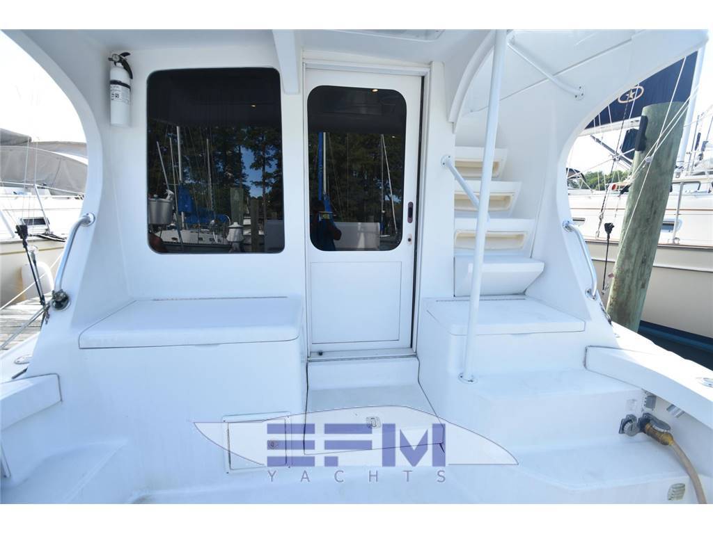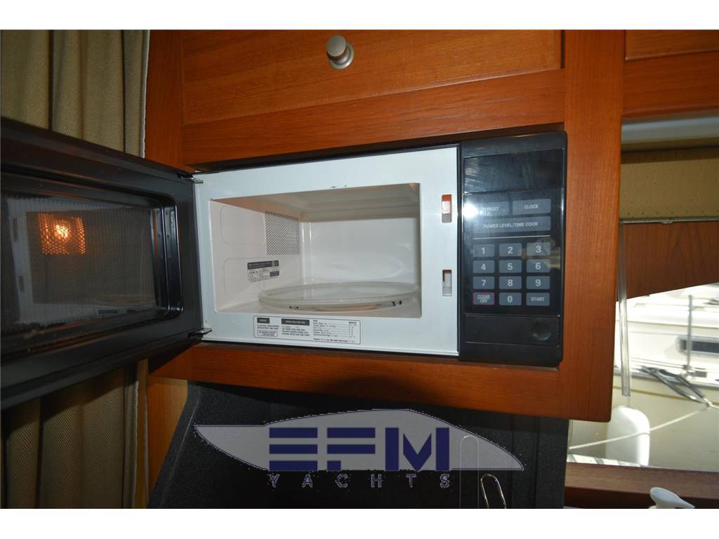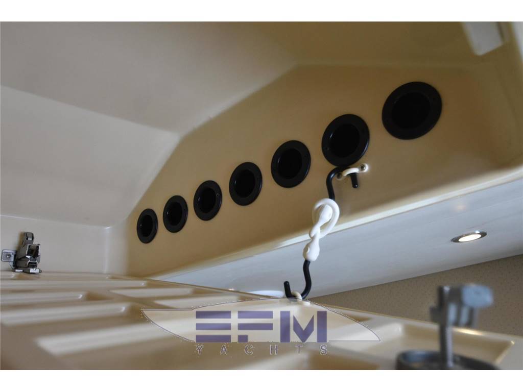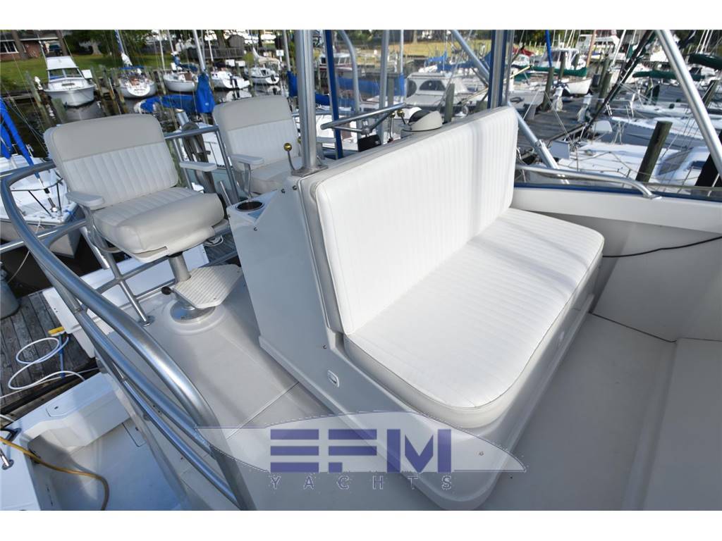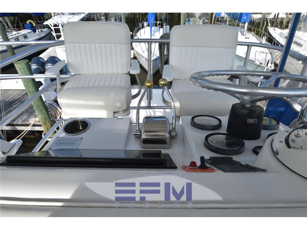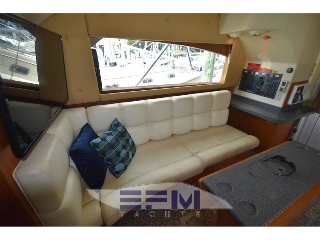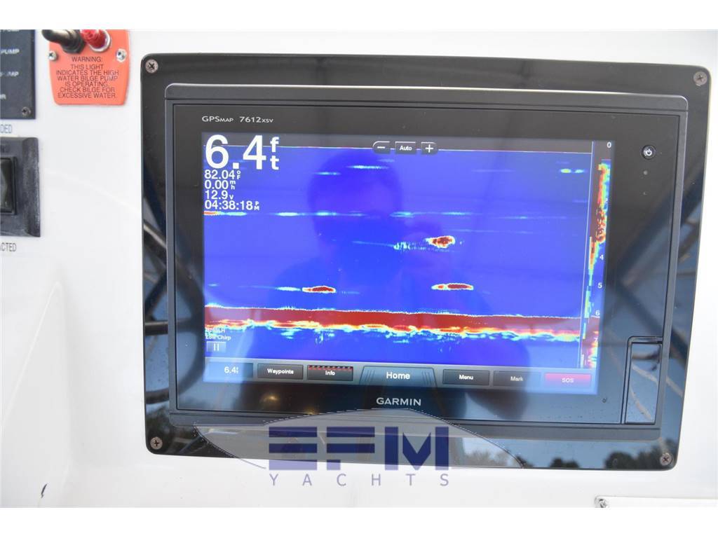 Notas internas-All interior lighting has been changed to LED fixtures -12,000 btu Reverse Cycle Heat/Air Conditioning System -Lockable salon door -New interior carpeting -Satin Teak interior cabinetry, very nice condition -Stbd side AC/DC Breaker panel -Remote Generator control panel -Stbd side Salon Sofa with pull-up backrest (making for upper and lower sleeping bunks -Rod Storage located behind the Sofa backrest -Overhead Rod Storage located in the ceiling of the salon -37 inch Flat Screen SmartTV located in stbd forward of the Salon -Port side sofa with storage beneath -High/Low Salon Table with drop leaves (has a weighted bottom, easily movable) Port side Galley: -Corian countertop -Upper and lower Satin Teak cabinets -GE Turntable microwave oven -NovaKool Undercounter Refrigerator/Freezer with teak face -Stainless steel double sink -Combination faucet -Princess 2 burner electric stove -Black & Decker Spacemaker Coffee maker Lower Cabin: -3 steps down to the lower cabin (Steps raise to provide access to the Pump/Mechanical Room) -Forward Master Cabin -Double Bed, on the angle -(3) large drawers beneath bed -Stbd side hanging locker (closet) -8,000 btu Reverse cycle Heat/Air Conditioning system for master cabin -Vizio 27 inch SmartTV -JVC Stereo -Upper Storage shelves (upholstered) -Overhead lighting (LED lights) -Overhead hatch and screen -Built in night stand with storage beneath Head and Shower is a Wonderful use of space. -Stbd side enclosed head with Vac-U Flush toilet, Stainless steel sink, medicine cabinet, storage beneath sink, privacy door -Port side Shower, with a shower curtain, shower wand and seat -The shower space also has a stainless steel sink with medicine cabinet Notas de la instrumentaciónEngines:-twin Cummins Diamond Series, model 6BTA5.9, 370 hp each (450 original hrs) -(2) New Raw water pumps. Summer 2022 -Complete Oil and Filter service, Summer 2022 -Engine Zincs replaced, Summer 2022 -ZF Marine Transmissions -Dripless Shaft Seals GENERATOR: -Kohler 8 kw diesel powered generator, located in Sound Shield (175 original hours on generator) -Remote start/Stop control panel located in salon -New raw water impeller, Summer 2022 -Engine Generator and House Batteries replaced, Summer 2022 -ProMariner ProNautic 12-40p Smart Charger, Installed Summer 2022 -Generator Impeller changed, Summer 2022 MECHANICAL EQUIPMENT: -12,000 btu Reverse cycle Heat/Air Conditioning unit for Salon -8,000 btu Reverse Cycle Heat/Air Conditioning unit for Lower Cabin -Reverso Oil Change System -Stainless Steel 6 gallon water heater (new Spring 2022) -Automatic Fire Suppression System FLYING BRIDGE AND ELECTRONICS: -Molded in stairway leading up to the Bridge -(2) Pedestal chairs with new Upholstery (each with it's own cover) -Forward bench seat with new Upholstery -4 sided eisenglass helm enclosure, all new Glass Spring 2022 -FullConsole and dash cover -Magnetic Compass -Garmin GPSmap 7612 xsv (12 inch color Multi Function Touch Screen) -Garmin GPSmap 7608 (8 inch color Multi Function touch screen) -CHIRP Transducer with superior Fish Finding capability -Garmin xHD Dome Radar (48 mile Max Range) with Chart Plotter Overlay -Standard Horizon VHF Radio -Fusion AM/FM/AUX/Bluetooth/SiriusXM ready flybridge stereo -Port and Stbd engine analog gauges -Individual Throttle and Transmission controls Notas de armamentoCockpit and Stern:-Port stern transom door-Transom Fishbox -Gunwhale mounted rod holders -50 amp shore power connection -Horizontal storage along both sides of the cockpit -Double Spreader outriggers, double rigged -Molded in Stairway to Bridge, cooler storage located beneath the stairs -Built in Fishbox in the Port/Forward area of the cockpit -Fresh water Bait Prep Sink -Built in Tackle Storage -Cockpit engine room access Side and Foredeck: -Molded in steps to side decks on both sides of cockpit -Sidewalks with aluminum handrails along both sides of the house -Aluminum Bow Railing -Molded in Bow Pulpit -Lewmar Anchor Windlass -Foredeck hatch |