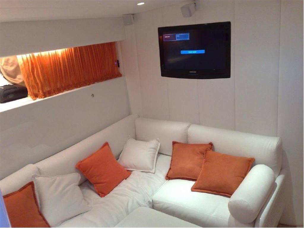 Additional Information Gps – Ecoscandaglio – Plotter – Log – Bussola – Vhf – Autopilata – Radio – Tv con Dvd – Altoparlanti nel pozzetto – Bowthruster – Carica batterie – Aria condizionata – Generatore Mase 6,5 Kw – Cuscineria – Passerella in carbonio – Tavolo nel pozzetto – Teak nel pozzetto – Tender – Copertura cockpit – Piattaforma bagno