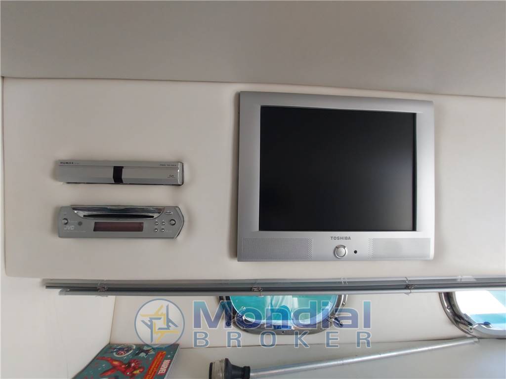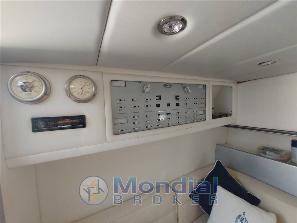 Notas internasNotas de la instrumentaciónVhf Radio System Simrad RS86 – Bidata Autothelm ST60 – Chart Plotter Raymarine – Contacatena digitale – Ind.Angolo di barra e flaps – Autopilota Navicontrol – Doppie manette – Strumenti motori digitaliNotas de armamentoGeneratore Dynamica 6 kw – Aria condizionata – Passerella idraulica Besenzoni – Verricello salpancora – Ancora Bruce e catena in acciaio Inox – Bimini pozzetto a scomparsa- Mobile bar pozzetto con frigobar e lavello – Impianto Stereo Sony – Tv – Dotazioni di sicurezza complete |