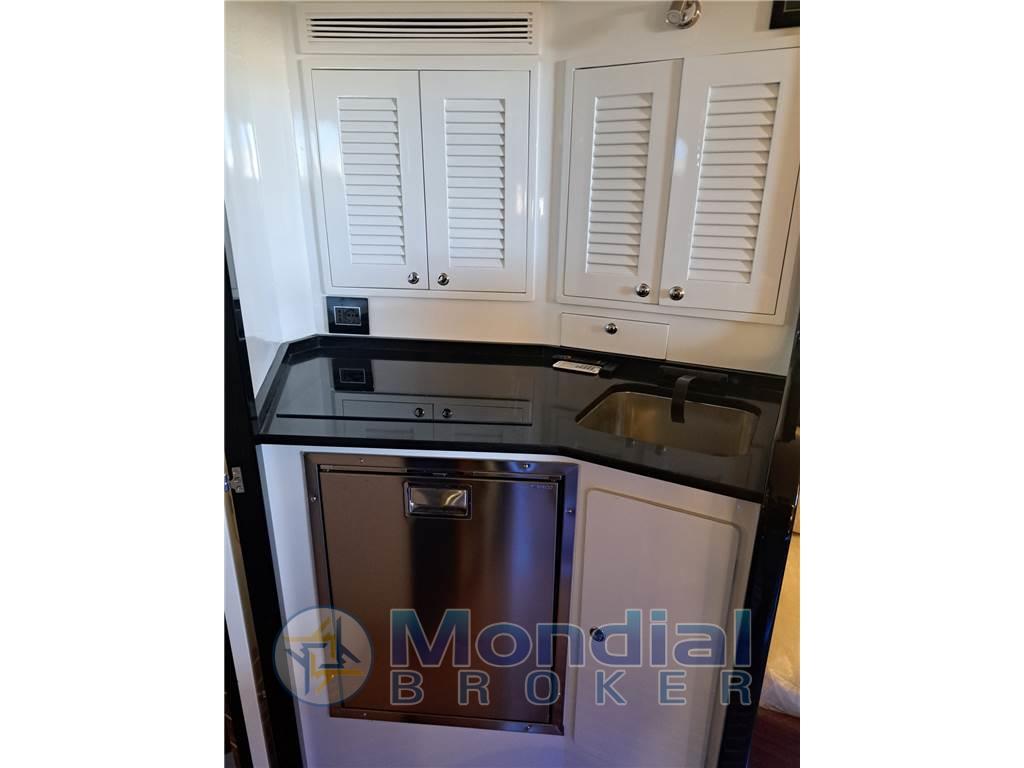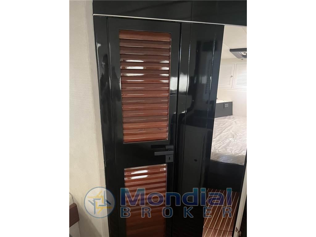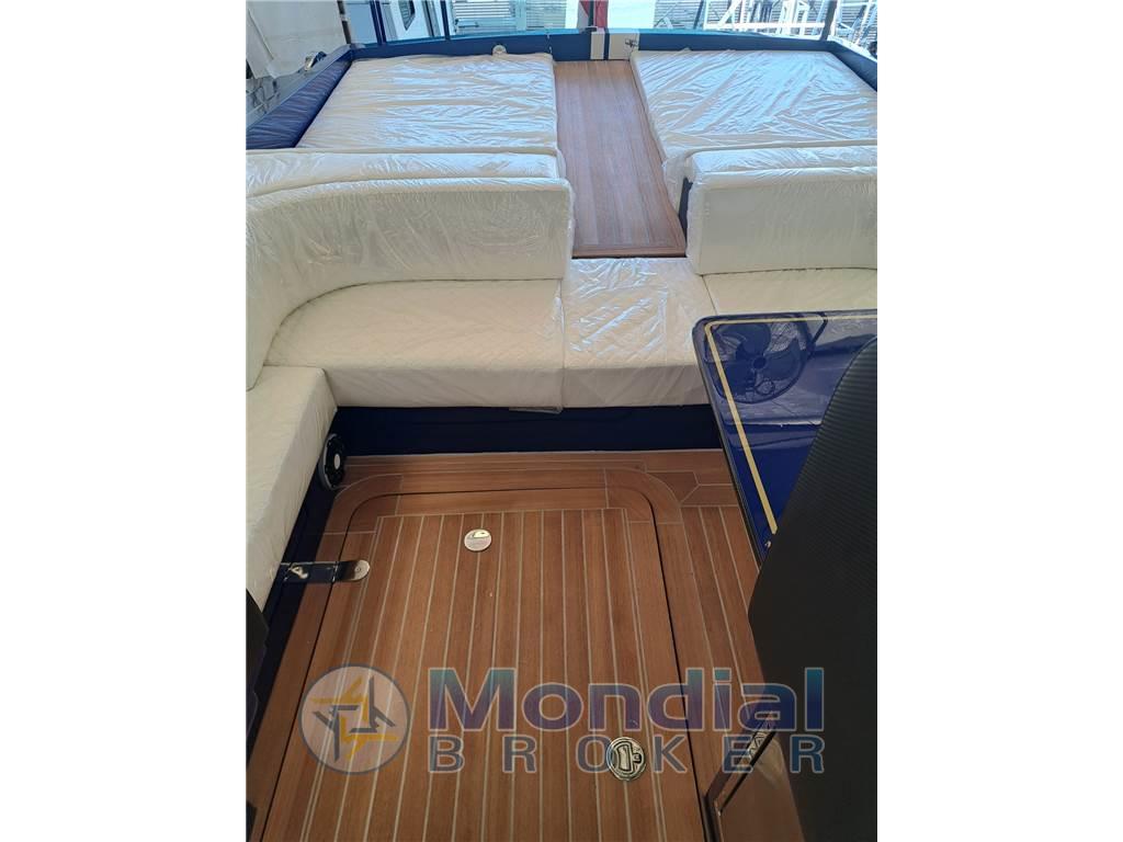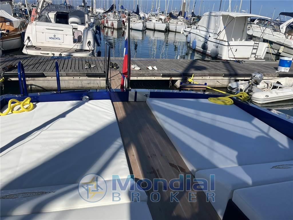 Notas internasGli interni sono stati ripresi apportando leggere modifiche. Questa scelta è stata appositamente lasciata affinché l’acquirente possa valutare di personalizzargli a suo piacimento e con i materiali da lui selezionati. Tecnicamente sono stati rivisti l’impianto elettrico, l’impianto idraulico, il bagno con nuovo wc elettrico, piano lavello e nuovo lavello, angolo cottura con nuovo piano, lavello incassato e nuove piastre a induzione. Notas de la instrumentaciónIl nuovo Magnum 40 è dotato di due monitor Axiom da 19” e di un monitor da 12” posizionati nella ampiaplancia di comando. La realizzazione della nuova oleodinamica ha consentito l’inserimento gli attuatori del pilota automatico Raymarine mod. EV 300 con display posizionato in plancia, insieme ad un VHF fisso Ray 90, con AIS ed un Eco-Log B 60. Tutta le utenze della barca sono comandate dalla centralina domotica Raymarine Yacht Sense link, nel caso di malfunzionamento il funzionamento di ogni utenza è garantito dai classici interruttori magnetotermici. A questa centralina è collegato un sistema di comunicazione che consente di gestire tutte le utenze di bordo dal proprio cellulare Strumentazione Raymarine: - nr. 2 monitor Axiom 19 “ - nr. 1 monitor Axion 12 “ - VHF fisso Ray 90 - Pilota automatico mod. EV 300 con display - Raymarine Yacht Sense link domotica - 1 x Eco-Log B 60 - AIS Notas de armamentoFrigo esterno inox a cassettoBoiler acqua calda 70 lt Bowthruster elettrico ..Kw Cuscineria completa esterna customizzata Tendalino sole tipo vela con nr. 4 pali in carbonio diametro 60mm e alloggi in acciaio inox Doccia esterna calda e fredda Tavolo pozzetto Pozzetto in teak Plancetta di poppa con scaletta retrattile Tappezzeria nuova Nuova linea ormeggio ancora e catena |