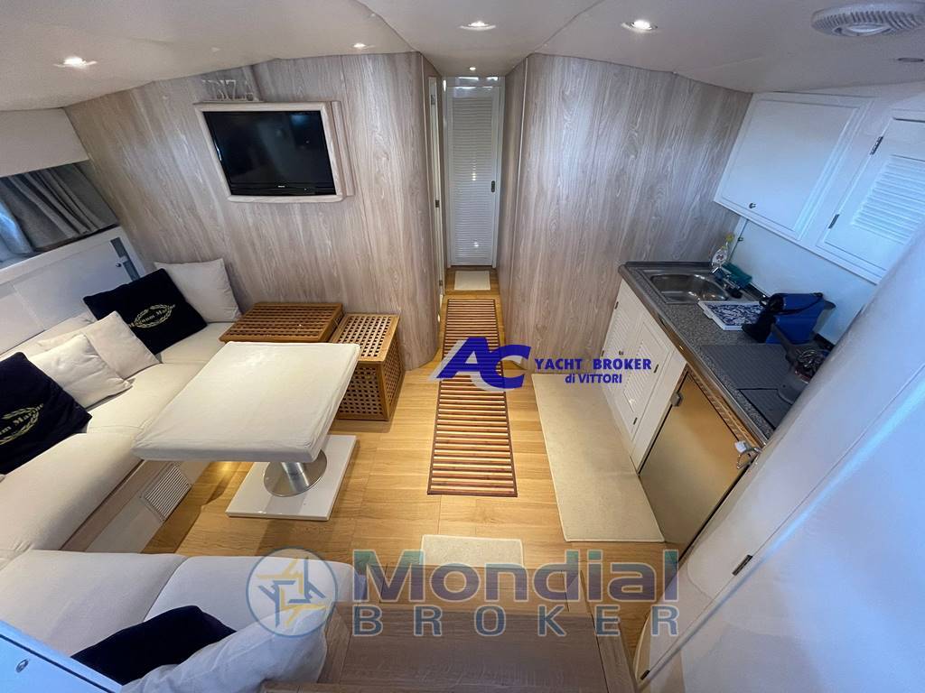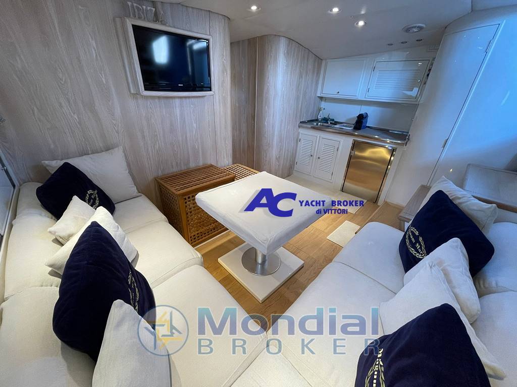 Notas internasNotas de la instrumentaciónDoppio gps, vhf, ecoscandaglio, pilota automatico, termo camera, impianto stereoNotas de armamentoGeneratore da 9 Kw, aria condizionata indipendente in tutte le cabine, elica di prua, boiler, doccetta esterna, passerella idraulica, frigo interno e 2 esterni, tavolo esterno, tendalino, tenda araba, cuscineria prendisole completa prua e poppa con spugne, tender mt.3.80 con motore f/b |