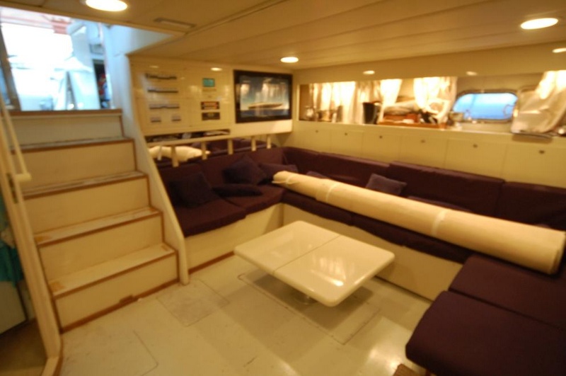 Notas internasNotas de la instrumentaciónVHF SHIPMATE RS8300 BIDATA trazador de la carta y RADAR SIMRAD NX45 piloto automático interfaz GEONAV GSC/MTU 110 diagnóstico sistema electrónico esposasNotas de armamentoMAX POWER Helice de proa ITT JABSCO eléctrico Faro luces inundaron popa retráctil hidráulico pasarela generador 16 KW ONAN inversor-cargador IDROMAR WATERMAKER DIGITAL 120 l/H doble sistema de TV de satélite aire acondicionado ciclo 3 decodificadores SKY 3 SAMSUNG LCD + sonido BOSE sistema SONY CD/DVD/MP3 PLAYER + máquina de hielo refrigerador cabina WET BAR con fregadero, dos cocinasBARBACOA, NEVERA Y CONGELADOR COMPLETO TOLDOS (SOL TIENDA + NAVEGACIÓN + CIERRE DE CABINA) EXTERNO COMPLETO LA CÉLULA CERRADA SUAVE COJINES COMPLETO EQUIPO SEGURIDAD MARÃTIMA |
