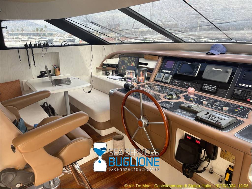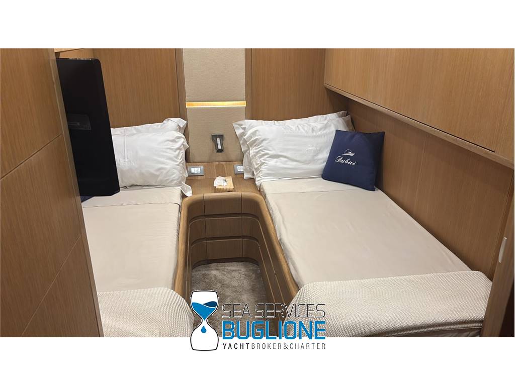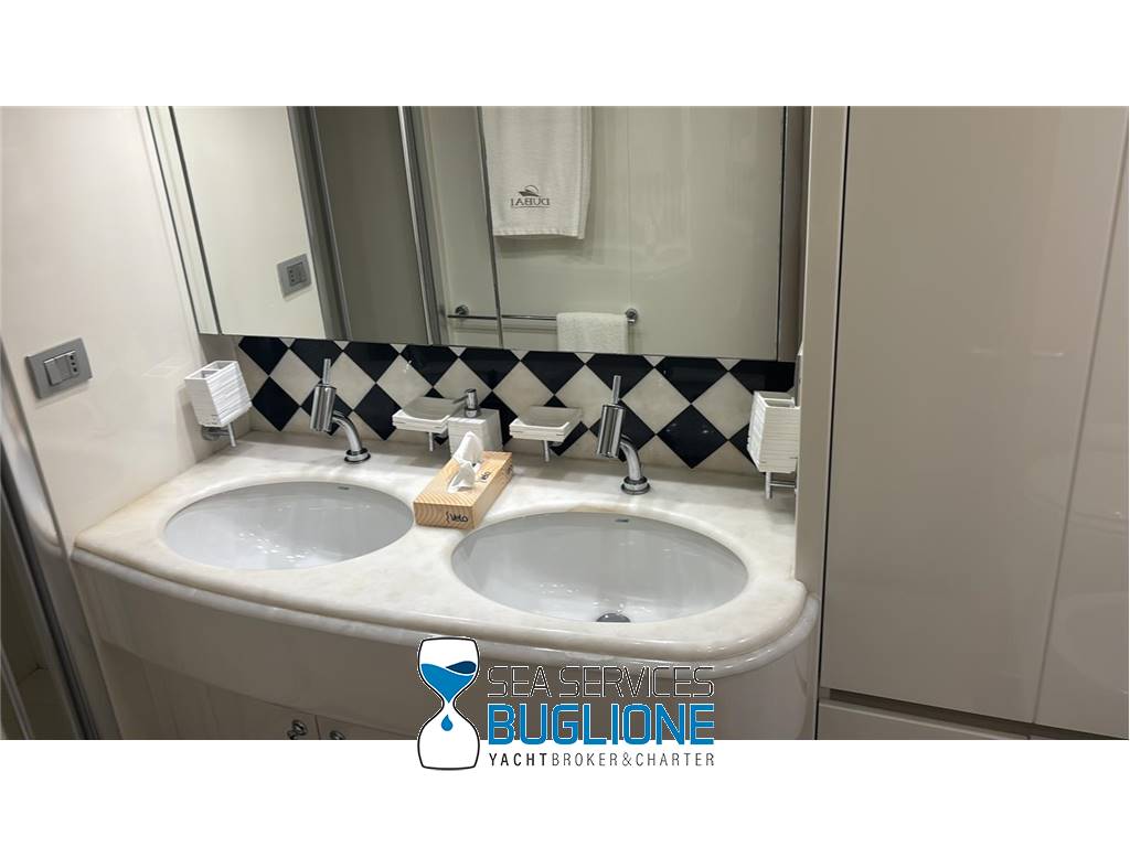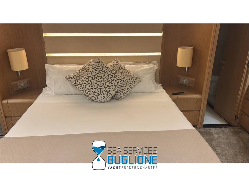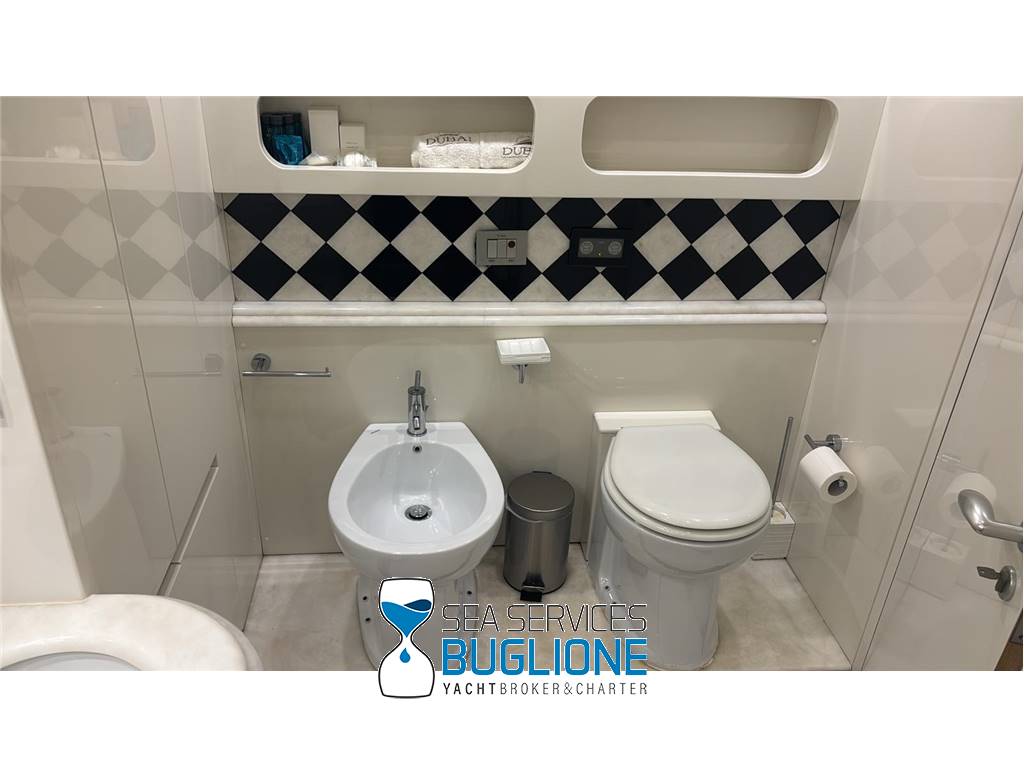 Notas internasInterni finemente lavorati in rovere chiaro e calpestio in moquette di colore grigio chiaro. Cabina armatoriale a tutto baglio, letto King size dotato di luci di cortesia per la lettura, testiera del letto con Led, ambiente molto arioso, sempre in contatto con il mare ed insonorizzato . Esclusivo l'accesso privato al bagno armatoriale dotato di ampio vano doccia con seduta, santirati e lavabo. Cabina Vip a prua nave con letto matrimoniale e bagno privato 2 Cabine vip con bagno privato . Notas de la instrumentaciónN°3 Plotter Gps RaymarineAutopilota Tridata Raymarine Concatena Radar Vhf Notas de armamentoPasserella idraulicaGeneratore Aria Condizionata Elica di Prua Caricabatterie Mastervolt |
