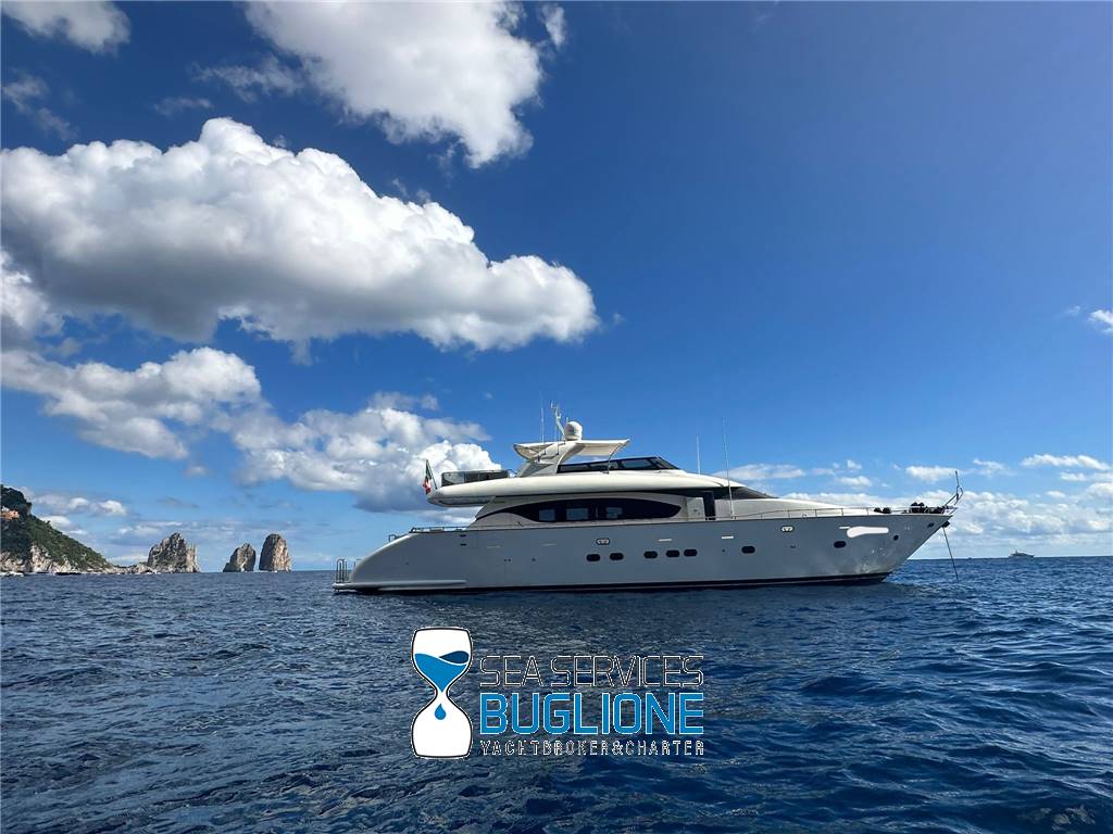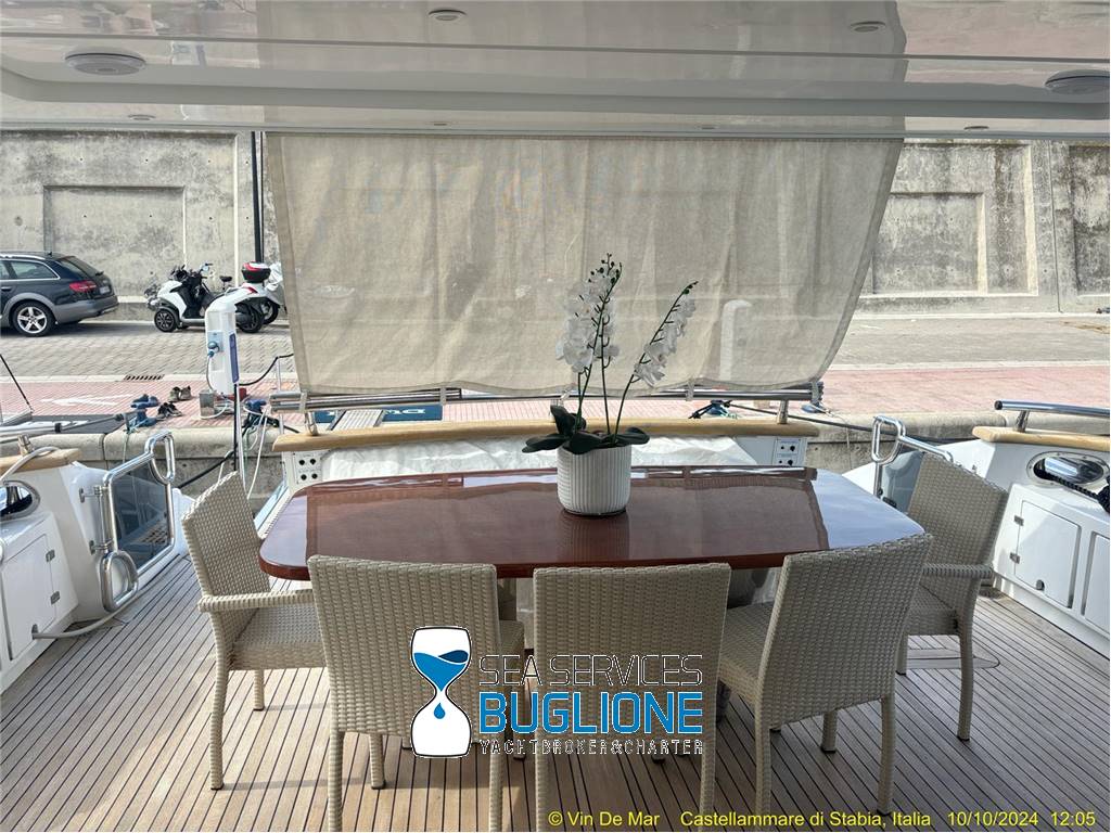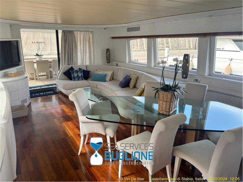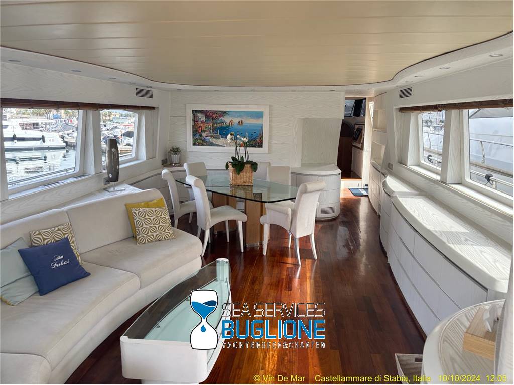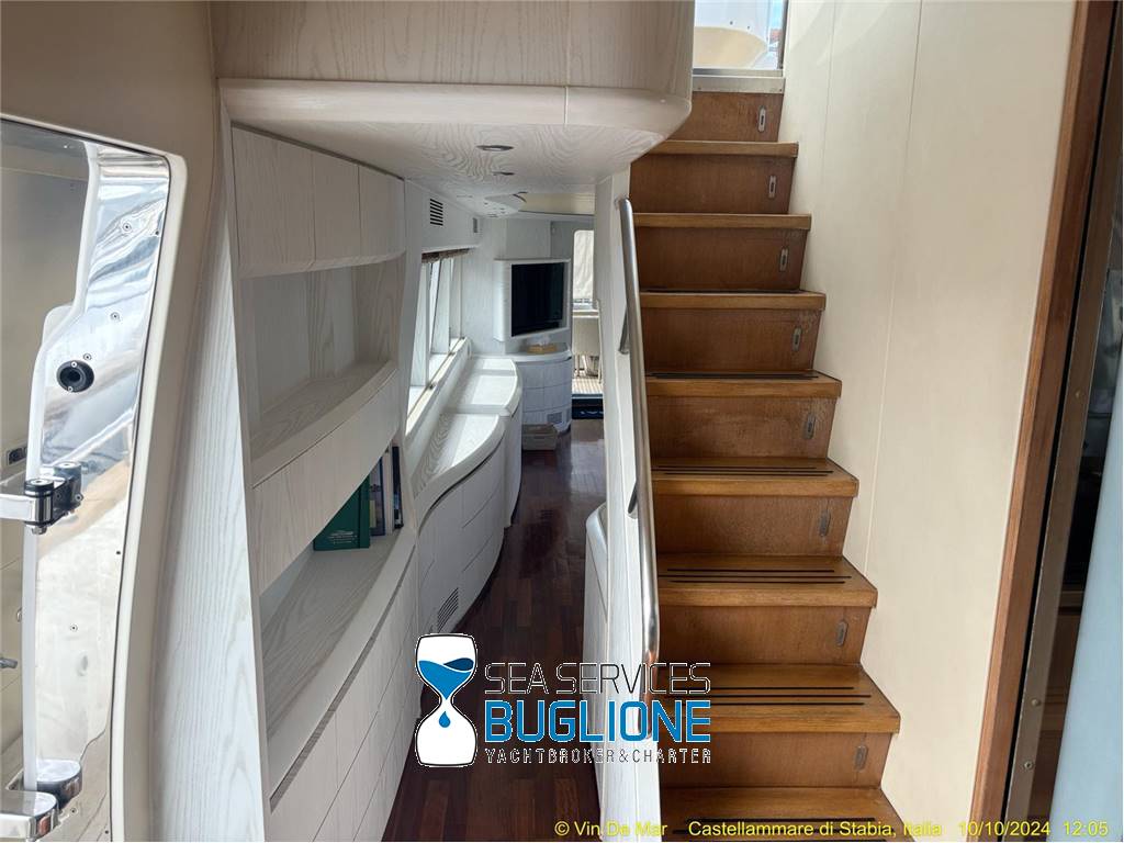 Notas internasInterni finemente lavorati in rovere chiaro e calpestio in moquette di colore grigio chiaro. Cabina armatoriale a tutto baglio, letto King size dotato di luci di cortesia per la lettura, testiera del letto con Led, ambiente molto arioso, sempre in contatto con il mare ed insonorizzato . Esclusivo l'accesso privato al bagno armatoriale dotato di ampio vano doccia con seduta, santirati e lavabo. Cabina Vip a prua nave con letto matrimoniale e bagno privato 2 Cabine vip con bagno privato . Notas de la instrumentaciónN°3 Plotter Gps RaymarineAutopilota Tridata Raymarine Concatena Radar Vhf Notas de armamentoPasserella idraulicaGeneratore Aria Condizionata Elica di Prua Caricabatterie Mastervolt |