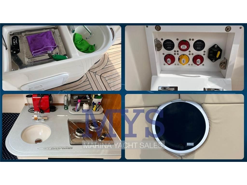 Notas internasDinette di prua divano a V e tavolo, trasformabile in letto matrimoniale a 2 posti Cuccetta di poppa con letto matrimoniale alla francese Cucina completa di lavello, 2 fuochi a gas e frigorifero Bagno separato con doccia, wc elettrico e lavello Notas de la instrumentaciónAngolo barraBussola Computer di bordo Contametri catena Contamiglia Display DSC VHF Ecoscandaglio Lowrance HDS9 2024 Flaps idraulici GPS Lowrance HDS9 2024 Pilota automatico Lowrance HDS9 2024 Elica di prua - bow thruster Batterie 3x150Ah 2024 Caricabatterie 2024 Luci di cortesia 2024 Luci subacquee 2024 Presa 220V da banchina Salpa Ancore Elettrico 2024 Prese interne 12v Prese interne 220v Altoparlanti Digitale Terrestre Impianto TV Radio AM/FM Stereo 2024 Tv Smart LG Frigorifero interno Autoclave Boiler per l'acqua calda Notas de armamentoAncora kg. 7,5 + 50 mt di catena 2024Rollbar Bimini Cappottina Copriscafo Cuscineria completa 2024 Cuscineria di poppa 2024 Cuscineria di prua 2024 Cuscineria Pozzetto 2024 Tendalino Pozzetto Teak Tavolo pozzetto Doccia esterna 2024 Piattaforma in teak Scaletta da bagno REFITTING/MANUTENZIONE STRAORDINARIA 2024 - ancora e verricello nuovi - cuscineria completa nuova - scala cabina nuova - teak nuovo - strumentazione Mercruiser originale nuova - GPS, ecoscandaglio e pilota nuovi - caricabatterie nuovo - 3 batterie nuove - impianto elettrico nuovo - motori e piedi sbarcati e portati a "0" ore - pompe di sentina nuove - stereo nuovo - TV smart nuovo - luci interne, subacquee e di navigazione nuove - oblò + tende nuove - carrozzeria lucidata completamente - bottazzo nuovo - prese a mare nuove - impianto wc nuovo - doccia interna ed esterna nuove - interni completamente rifatti |