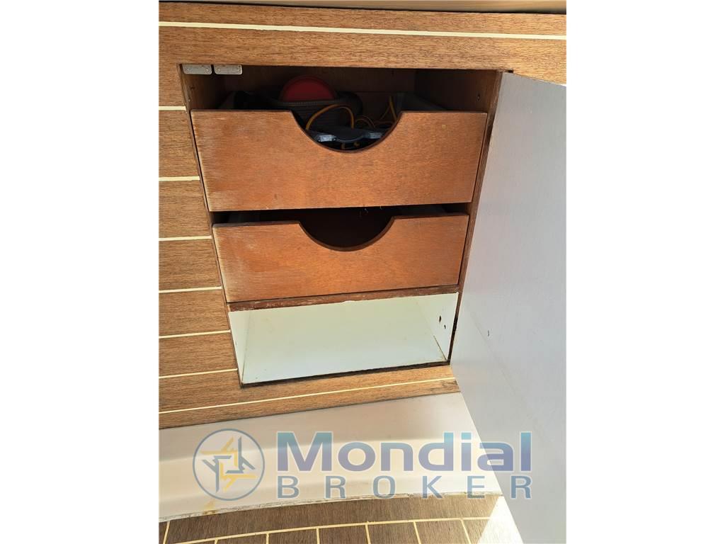 Ancora, Batterie, Caricabatterie, Ecoscandaglio, Elica di prua - bow thruster, Flap idraulici, GPS, Impianto antincendio, Piattaforma (AD IMMERSIONE ), Pompa di sentina elettrica, Pozzetto Teak, Presa 220V banchina, Radio VHF, Salpa Ancore Elettrico, Scaletta da bagno, Tavolo pozzetto
