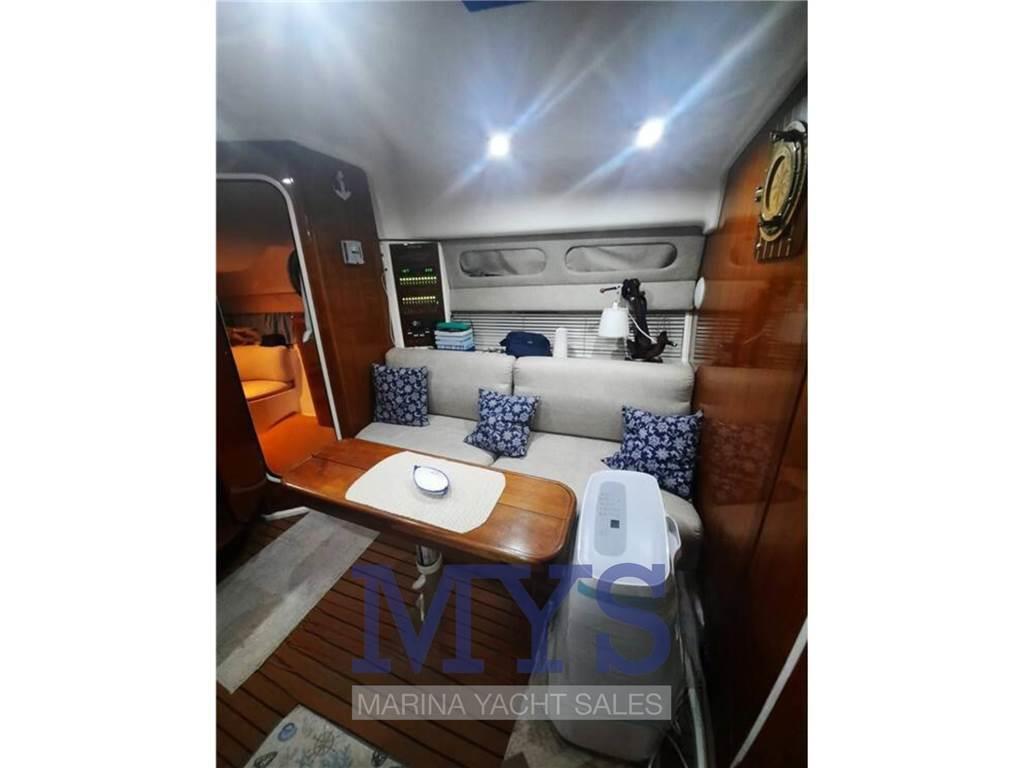 Notas internasCabina di prua con letto matrimoniale Cabina di poppa a tutto baglio con letto matrimoniale Dinette con divano e tavolo da pranzo Cucina completa di lavello, frigo e fuochi a gas Notas de la instrumentaciónBussolaGPS Ecoscandaglio VHF Salpancora Elettrico Presa 220V da banchina Caricabatterie Inverter Prese interne 220v Altoparlanti Radio AM/FM Stereo Impianto TV Frigorifero esterno Autoclave Boiler per l'acqua calda Notas de armamentoCuscineria di poppaCuscineria di prua (no copri oblò) Cuscineria Pozzetto Tendalino Doccia esterna Rollbar Scaletta da bagno Tavolo pozzetto LAVORI ESEGUITI 2021: carena portata a zero 2022: n. 3 batterie nuove da 105 ampere 2023: sbarco e reimbarco motori; sostituzione trim piede dx; kit innesto trim; kit trasmissione cardano piede dx; cuscinetto cardano; olio piede; revisione campana con canotto sterzo; trattamento carena; trattamento metalli piede eliche campane e flap; materiali di consumo; kit zinchi; lucidatura e ritocchi; tagliando motori; filtri aria motori; smontaggio e rimontaggio turbine; insonorizzazione coperchio motore; manodopera smotaggio campane revisione campane rimontaggio e sigillatura canotto sterzo; scaletta a scomparsa inox; sostituzione pompa di sentina; ripristno impianto staccabatteria; cuffie cardano e scarico; bussola; volante; interruttori nuovi; element 9hv; pannello cruscotto, interruttori e acc motori; strumenti motori; alternatore sx nuovo; piede poppiero usato a zero ore; lucidatura scafo; cristal anteriore nuovo; fuochi nuovi; impianto gas nuovo; materasso di poppa su misura in memory nuovi; zanzariere nuove; tappezzeria e tendaggi interni nuovi; catena 40 mt nuova; frigoriferi rigenerati. |