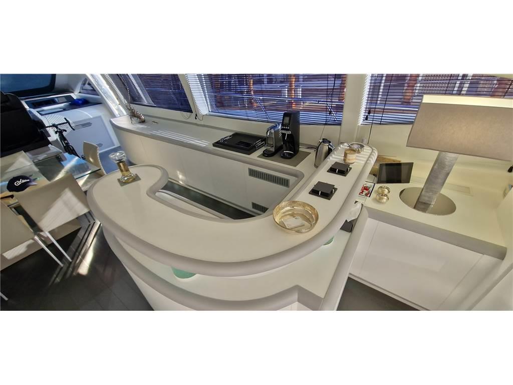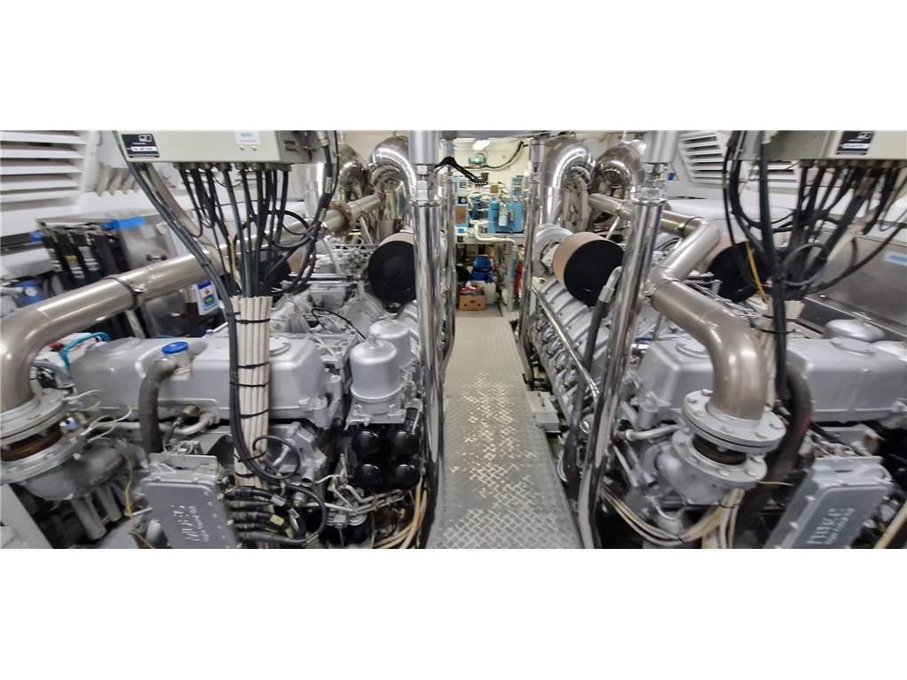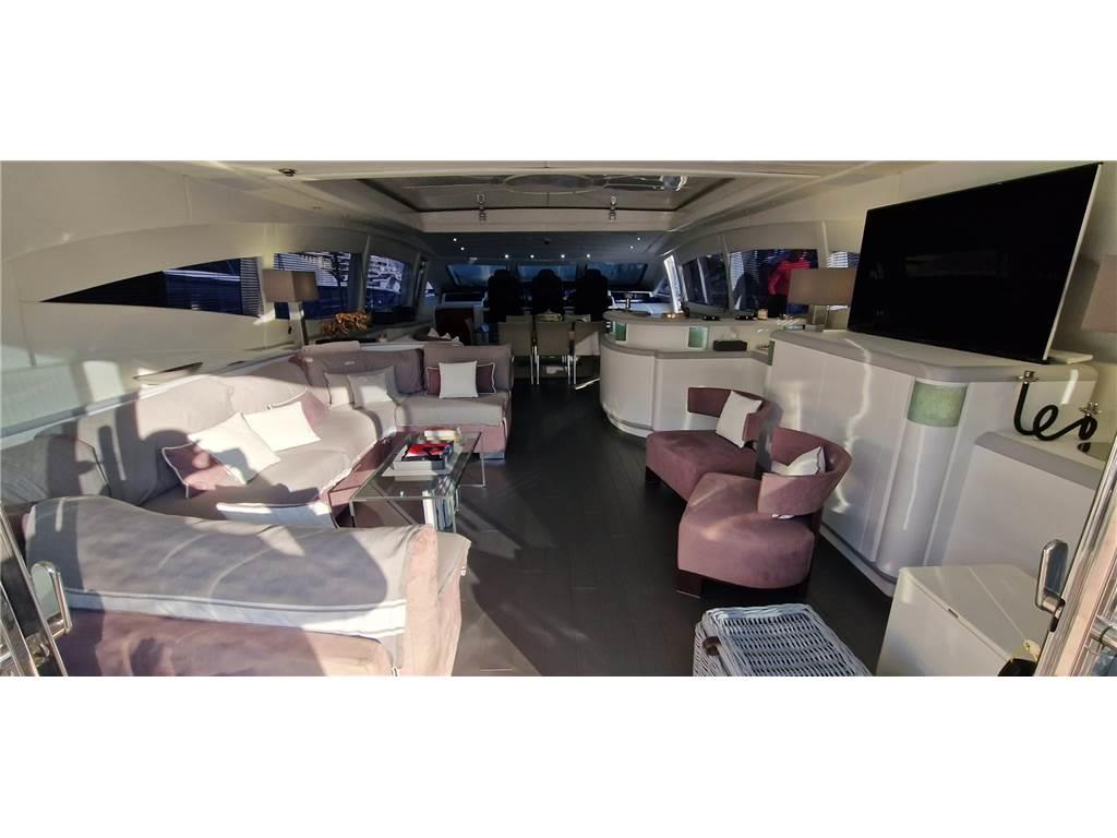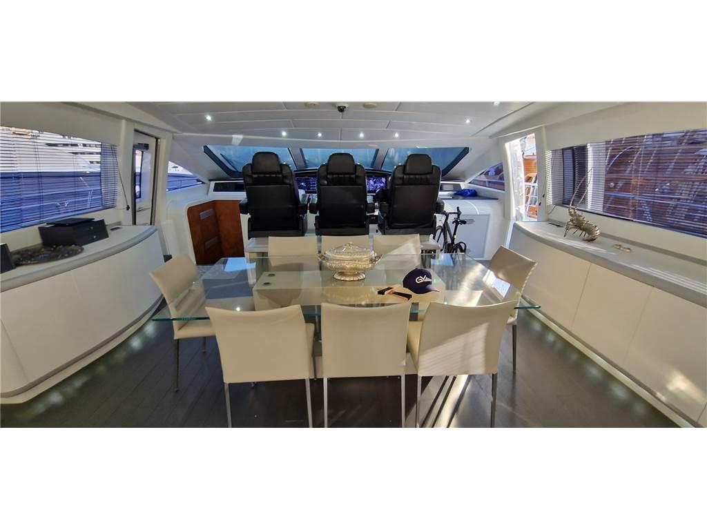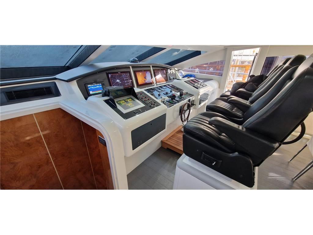 Notas de armamentoAllestimento tecnico e di coperta: Allarme motore, Allarme sentina, Ancora, Autogonfiabile, Camminamenti laterali in teak, Doccia esterna, Elica di poppa - stern thruster, Elica di prua - bow thruster, Flap idraulici, Garage per tender, Gruette per moto d'acqua, Hard top, Impianto antincendio, 2 Moto d'acqua (Sea Doo Trix), Passerella, Pompa di sentina automatica, Pompa di sentina manuale, Porta ingresso, 2 Porta laterale, Pozzetto Teak, Presa 220V banchina, Presa acqua banchina, Raddrizzatore, Salpa Ancore Elettrico, Scaletta da bagno, Tavolo pozzetto, Tender (Avon 450 jet), Tromba, Winch.
