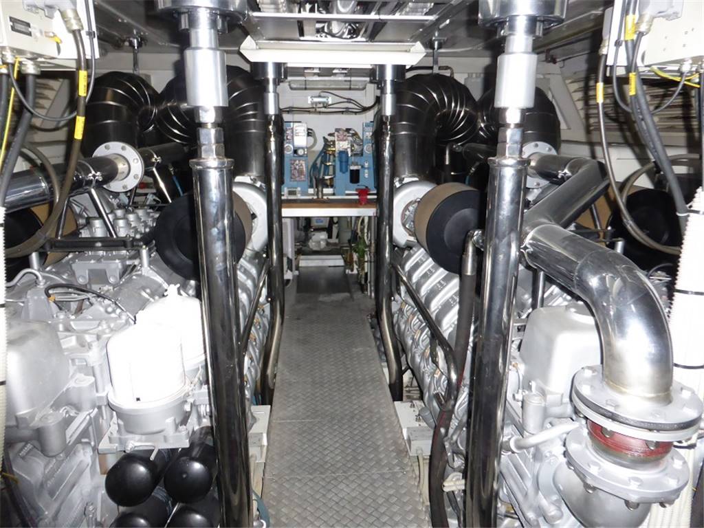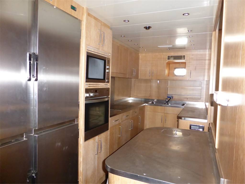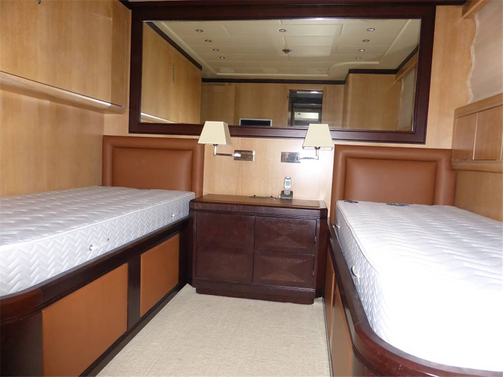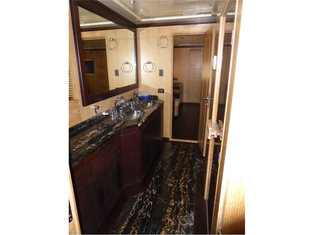 Notas internasNotas de la instrumentación• ENGINES: 2MTU 12VM90 series 2750hp / hours of duty: 647 (right engine), 651 (left engine)• • TRANSMISSION: water jets Kamewa • SPEED: 33 cruising / 38 top speed • GENERATORS: 2*33KW Kohler 380V / hours of duty: 2500 • Capacities: Fuel Capacity: 14750 liters • Water Capacity: 2000 Liters • Water maker: 250 l/hour • • Accommodation 9 guests in 3 doubles and one twin (3 beds) • 4/5 crew in 3 crew cabins • Air conditioning: Throughout with cabin controls • Tender & Toys: 4,20m zodiac 90cv tender jet • 1 jet ski • Water-Skiing • Banana / Snorkel gear • Kayak • • Entertainment Equipment: 108' Mangusta • - Main saloon : Audio system , 50' Plasma TV, DVD, Ipod dock and surround system • - Master cabin : 42' Plasma TV, DVD, Ipod dock and surround system • - VIP cabins : 30' TV, DVD and iPod dock • - Guest cabin : 30’ TV, DVD, iPod dock • - Sun and main deck : Audio system Notas de armamento• 2 x Kohler Generators – 33kw• Air conditioning : Throughout with cabin controls • Main saloon : Audio system, 50' Plasma TV, DVD, Ipod dock and surround system. • Master cabin : 42' Plasma TV, DVD, Ipod dock and surround system. • VIP cabins : 30' TV, DVD and iPod dock. • Guest cabin : 30’ TV, DVD, iPod dock. • Sun and main deck : Audio system. • 4,20m zodiac 90cv tender jet • Depthsounder • Log-speedometer • Wind speed and direction • Repeater(s) • Navigation center • Plotter • Autopilot • Compass • GPS • VHF • Radar • Radar Detector • Computer • TV set • VCR • DVD player • Radio • CD player • Cockpit speakers • Stern thruster • Bow thruster • Electric bilge pump • Manual bilge pump • Battery charger • Heating • Hot water • Fresh water maker • Sea water pump • Dishwasher • Washing machine • Oven • Microwave oven • Marine head • Refrigerator • Deep freezer • Shore power inlet • Generator • Inverter • Teak cockpit • Hydraulic gangway • Cockpit cushions • Cockpit table • Swimming ladder • Cockpit shower • Liferaft |