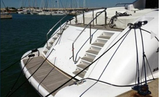 Notas internas4 baños equipo Cabañas 3 camas con baño cabina de armador en el centro de la embarcación, baño privado y zona de guardarropa 2 Cabinas VIP en el arco con camas dobles, baño privado y zona de guardarropa Camarote con camas planas y comedor amplio baño y gran salón con sofás de cuero, madera y tejidos Cocina con horno, refrigerador, Hielera, microondas, placa vitrocerámica Notas de la instrumentaciónBrújula del piloto automáticoVelocÃmetro GPS sonda/Plotter Radar VHF Barra radar antena pantalla de la computadora a bordo del ángulo de la cadena metro contador Registro Barómetro Notas de armamentoAlarma de motorAlarma de sentina hélice arco exterior de ducha Reflector hidráulico aleta garaje para bote Gruas para motos de agua Limpieza de la cadena de pescantes para aspersores de bote Hidraulica Plataforma de popa teca eléctrico ancla chigre cabrestante incluyendo baño escalera cubierta de deformación Refrigerador exterior Faro Nº 6 satélite TV aire acondicionado Calefacción Parrilla/seguro terrazas de amortiguador Sistema estéreo reproductor de DVD |
