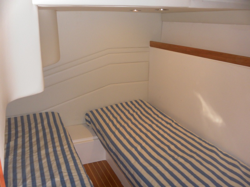 Notas de armamentoguardabarros de acero arco reflector eléctrico al aire libre luces de cortesÃa en la nevera de camping popa pasarela cubierta de la consola toalla cubierta de tela que lleva el diseño de la cabina del arco de acero cubierta - armario del arco - molinete eléctrico con deformaciones - Bruce ancla de 10 kg de acero - Cadena m. 50,8 mm - No 2 cornamusas de proa,2 centrales y 2 de popa en acero inoxidable AISI 316 - Pupitre de acero inoxidable equipado con cadenas de apertura en los terminales del cable de proa / de seguridad y de acero inoxidable AISI 316 - Rieles de popa y las manijas de acero inoxidable barras antivuelco - No 2 escotillas de cubierta de proa - No 7 ojos de buey de apertura de casco de acero inoxidable - parabrisas con marco de acero - guardabarros de acero AISI 316 - las luces de los reglamentos de navegación - abanderado - cuerno - Tapón de llenado de combustible y de agua de acero inoxidable AISI 316 - de ventilación de combustible con la retina resistente a las llamas y salpicaduras - respiradero del tanque de agua - imbornales de babor y estribor de escape de acero inoxidable AISI 316 - x "u" a proa y popa - superficies antideslizantes en la cubierta y los largueros. Cabina de auto-drenaje cabina y puesto de mando - roll-bar de resina - cabina armario con fregadero de servicio,el agua del grifo y la parrilla de cocina - cabina refrigerador l. 50 - el espacio de vivienda extintores - lado la vivienda para las botellas de gas - Asiento del conductor con silla - sofá en "U" - cubierta de popa - la vivienda para la apertura de la licitación por cilindro hidráulico de doble en la popa, solarium - acceso rápido a la taquilla del motor - taquillas para material de la carcasa - portavasos - para los objetos - Mesa - medidas de teca para el acceso a la cubierta lateral - la plataforma de baño de teca - cabina de teca - escalera de baño con ascensores manejar - alojamiento retráctil pasarela hidráulica (extra) - Ducha con mezclador - Iluminación cubierta de la carlinga y laterales - 2 toldos en el arco de seguridad - el manual del propietario -