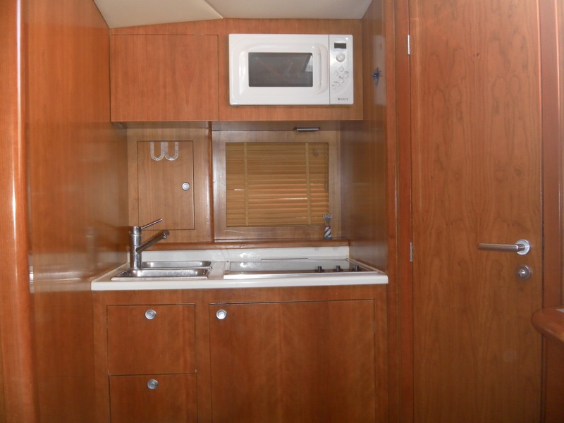 Notas internas12.000 btu aire acondicionado n.2 TV 17 "con sala de montaje aéreo - horno de la cocina de microondas - puerta escamoteable acceso a la cabina - Escalera de entrada de madera - sofá de cuero transformables en cama - armarios - plataforma del piso de madera - radio estéreo / CD con el interior y fuera de la caja - las luces del techo y focos - encimera de la cocina - estufa de cristal con tres quemadores - Fregadero de acero inoxidable doble con grifo mezclador - Indicador de nivel de agua - el frigorÃfico.75 - espacio diseñado para la TV (extra) - un baño - dentro de la tabla de popa No. diseño de cabina de 2 cabinas con camas individuales convertibles en doble - armarios - guardarropa - reflectores y luces de lectura - con cenefas de cortinas.diseño de cabina doble - armarios - guardarropa - cómoda - los focos y las luces de lectura - persianas con cortinas - acceso a los aseos.montaje WC eléctrico marinos porcelana inodoro con válvula de seguridad - bidet de porcelana con válvulas de seguridad - armario con lavabo y mezclador - cortina de la ducha y columna independiente - Espejo - colgantes - Focos - ducha de agua automática, sistema de descarga - toma de corriente - Rejilla teca.
