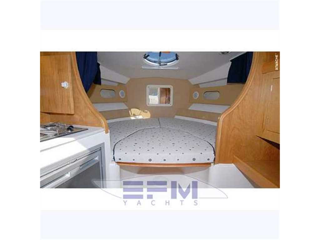 Notas internasEspace unique, ouverte et lumineuse avec une excellente finition, dinette en forme de V à l'avant avec deux canapés et une table centrale avec tous convertibles en un grand lit double, sortit de la cuisine mobile complet avec évier avec mitigeur, réfrigérateur, plaque de cuisson et garde-manger . Salle de bains avec wc lavabo et douche séparées - Une deuxième cabine arrière sous le cockpit ouvert et spacieux avec un lit double confortable - Dehors, dans le canapé du poste de pilotage avec chaise longue et d'un mobilier en contraste avec évier et la cuisinière. Unique and bright open space with excellent finishing, V-shaped dinette in the bow with 2 sofas and central table with all convertible into one large double bed, left the mobile kitchen complete with sink with mixer tap, fridge, hob and larder . Spacious bathroom with separate toilet sink and shower - A second cabin aft under the cockpit open and spacious with comfortable double bed - Outside in the cockpit sofa with chaise lounge and furniture contrasted with Sink and stove. Notas de la instrumentaciónAutoclave completa di docciaBoiler Bussola Impianto stereo Kit flaps Luci di cortesia Luci di navigazione Luci pozzetto Pompe di sentina (2) Raddrizzatore 220 V con cavo Serbatoio carburante con indicatore Verricello elettrico 1000 watt antenna TV Autoclave avec douche chaudière boussole système stéréo volets Kit Éclairage de courtoisie Les feux de navigation feux de cockpit Pompes de cale (2) Redresseur 220 V avec câble Réservoir de carburant avec du carburant Guindeau électrique 1000 W antenne de télévision Traceur GPS Echo-sondeur Instrumentation de moteur de VDO anlogica Volets elottroidraulico de commande Commande TRIM debout avec indicateur jauge de pression de carburant Porte Ouverture moteurs électriques Icom VHF Guindeau électrique de 1000 watts. GPS Plotter Ecoscandaglio Strumentazione motori anlogica VDO Comando elottroidraulico FLAPS Comando TRIM piedi con Indicatore Manometro carburante Apertura portello motori elettrica VHF Icom Salpa ancora elettrico 1000 watt. |