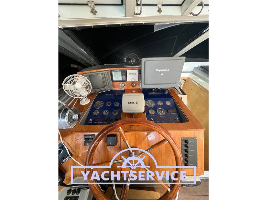 Notas de la instrumentaciónEcoscandaglio, GPS, Pilota automatico, Plotter con antenna GPS, Radar, Radio VHF, Bussola, Angolo barra, indicatore flaps, contametri catena, Contamiglia, doppi tendalini esterni estivi e invernali nuovi, aria condizionata caldo/freddo, antenna tv sat, elica di manovra a prua + elica di manovra a poppa, hard top con oblò apribili per il ricircolo dell'aria, wrapping su fascia grigia e sovrastruttura, motore salpancora elettrico nuovo.