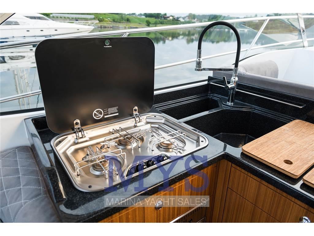 Notas internasCABINA DI PRUA CON LETTO MATRIMONIALE BAGNO DOTATO DI WC, LAVELLO E DOCCIA SEPARATA CABINA DI POPPA CON LETTO MATRIMONIALE A TUTTO BAGLIO LA GRANDE CUCINA SI ADATTA ANCHE PER LA CUCINA GOURMET. CONGELATORE E GRANDE FRIGORIFERO SIDE BY SIDE NELLA DOTAZIONE DI SERIE INSIEME A CUCINA A U CON PIANO DI LAVORO RIBALTABILE, DOPPIO LAVELLO, CUCINA A GAS 3 FUOCHI, FORNO ENO E TANTI CASSETTI PER LA DISPENSA. LA COPERTINA E' DIVERSA ED E' COMPOSTA IN PARTE DA UN SOFT TOP E DA UN'AVVOLGIMENTO LATERALE ATTORNO AL GRUPPO DI SEDILI. SI APRE E SI CHIUDE FACILE COME LE TENDE DI CASA. L'OPERAZIONE SI EFFETTUA IN POCHI SECONDI. IL PIÙ VELOCE E SEMPLICE DEL MONDO. UNA PRATICA PORTA NEL PARABREZZA CONSENTE UN ACCESSO VELOCE, SICURO E FACILE AL PONTE DI PRUA, SEMPRE I GRANDI PONTI LATERALI DA 28 CM PERMETTONO ANCHE UN FACILE SPOSTAMENTO INTORNO ALLA BARCA. UNA POSIZIONE DEL TIMONE BEN PROGETTATA, L'ECCELLENTE ERGONOMIA DEL CRUSCOTTO E LA STRUMENTAZIONE CHIARA GARANTISCONO UNA GUIDA CONFORTEVOLE, MENTRE L'AMPIO SEDILE TRIPLO CO-PILOT GARANTISCE UN'ESPERIENZA EMOZIONANTE PER TUTTA LA FAMIGLIA. COLORI INTERI ED ESTERNI SU RICHIESTA Notas de la instrumentaciónSTRUMENTAZIONE STANDARTElica di prua 6hp con radiocomando Radio FUSION con antenna esterna e altoparlanti Caricabatteria (60A) e presa a terra con cavo da 25m Pacco batteria (4 x scarica profonda piombo-acido + 1 x avviamento piombo-acido per ciascun motore) (~480 Ah) Pompa di sentina automatica (2pz) Sbrinatore 10kW + uscita aria calda in pozzetto Allarme antincendio in tutte le cabine + sala macchine El. interruttori principali con pulsanti sul cruscotto e monitoraggio batteria Frigorifero a doppio cassetto 182L Allarme antincendio in tutte le cabine + sala macchine Boiler acqua calda 230V 60L Toilette elettrica con scarica elettrica e indicazione fossa settica Fuochi e forno a gas Finestra apribile nel pozzetto lato guida USB in tutte le cabine Antenna TV con prese TV Indicatori Flaps Notas de armamentoARMAMENTO STANDARTFinestra di apertura a dritta del pozzetto Pavimento e gradini cabina in legno Doccia su piattaforma Antivegetativa carena e trasmissione Tendalini chiusura di pozzetto Doccia su piataforma Tende nelle cabine Antivegetativa Cuscineria completa del pozetto ed interna Antivegetativa carena e trasmissione PREZZO DI LISTINO, NUOVO FATTURABILE, SI VALUTANO PERMUTE |