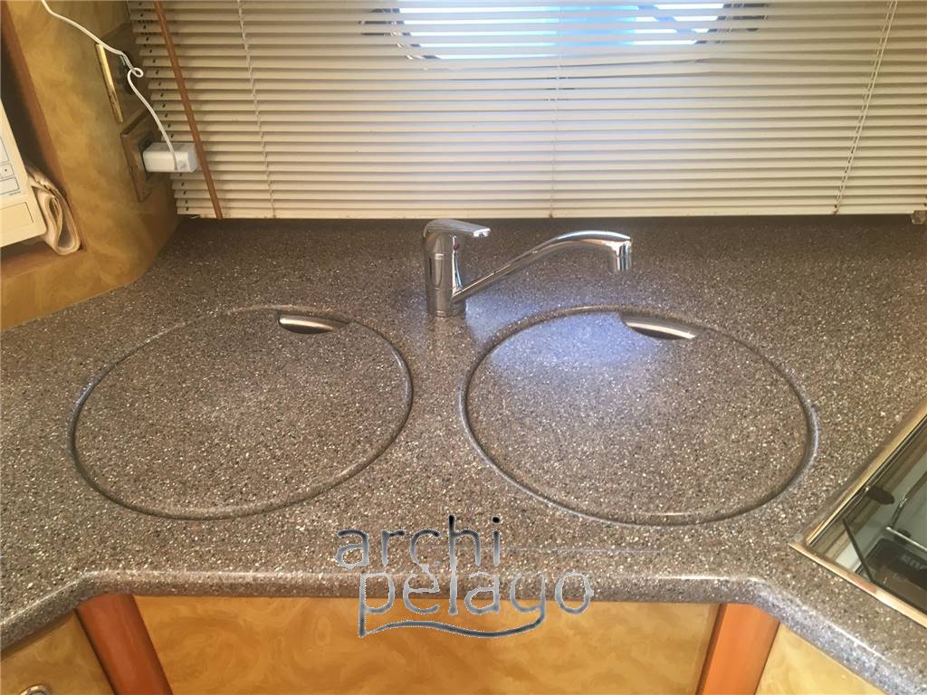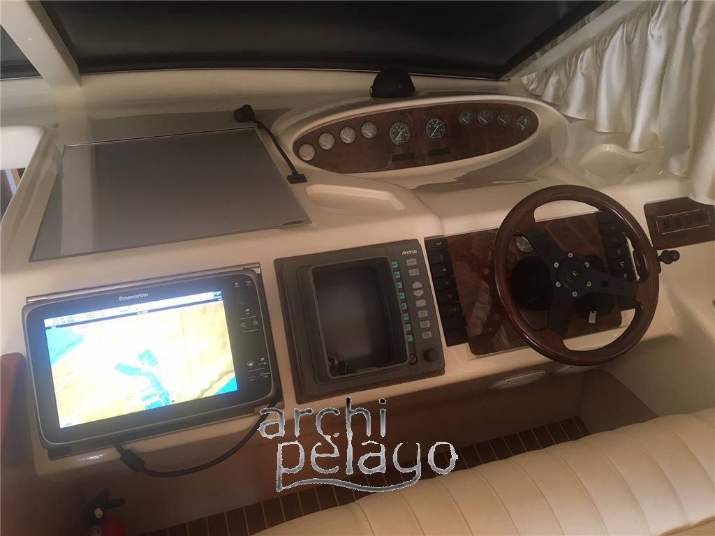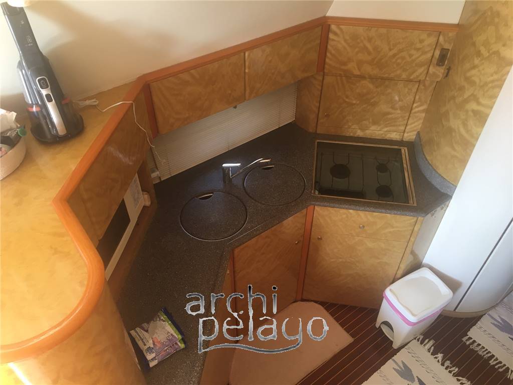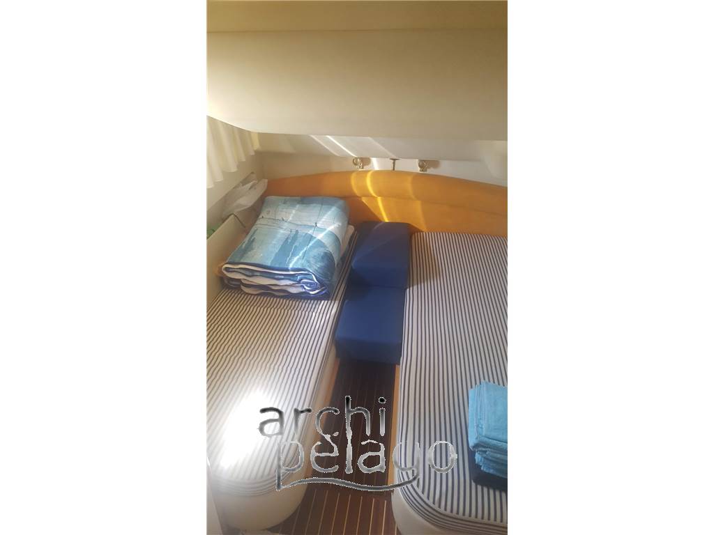 Notas internas- cabina armatore con letto matrimoniale a prua - cabina ospiti con n°2 letti in piano. - Bagno armatore con WC, lavello, box doccia. - Bagno ospiti con WC, lavello e doccia. CUCINA: - Piano cottura a GAS n° 3 fuochi - Microonde - Lavello a due vasche - Frigorifero n° 2 Notas de la instrumentaciónELETTRONICA:- Ecoscandaglio Autohelmar - Bussola - Indicatore angolo di barra - Autopilota Autohelmar - GPS Raymarine 12" - VHF - Radar - Faro orientabile - Radar. Comandi ripetuti sul FLY Notas de armamentoACCESSORI:- Elica di prua - Ancora - Salpa ancora - Gruppo elettrogeno - Boiler - Autoclave - Batterie - Carica batterie - Aria condizionata convertibile in riscaldamento - Flaps - Stereo in salone - N°1 TV in salone - Passerella idraulica - Scaletta bagno - Plancetta in teak allungata - Cuscineria di poppa e fly (2022) - Telo protezione cristalli - Telo flybridge - Telo copertura pozzetto - Telo copertura completa - Impianto antincendio in sala macchine -Tender Arimar 2,50 mt (2012) con motore Yamaha fuoribordo 4 T 6 HP (2012). |