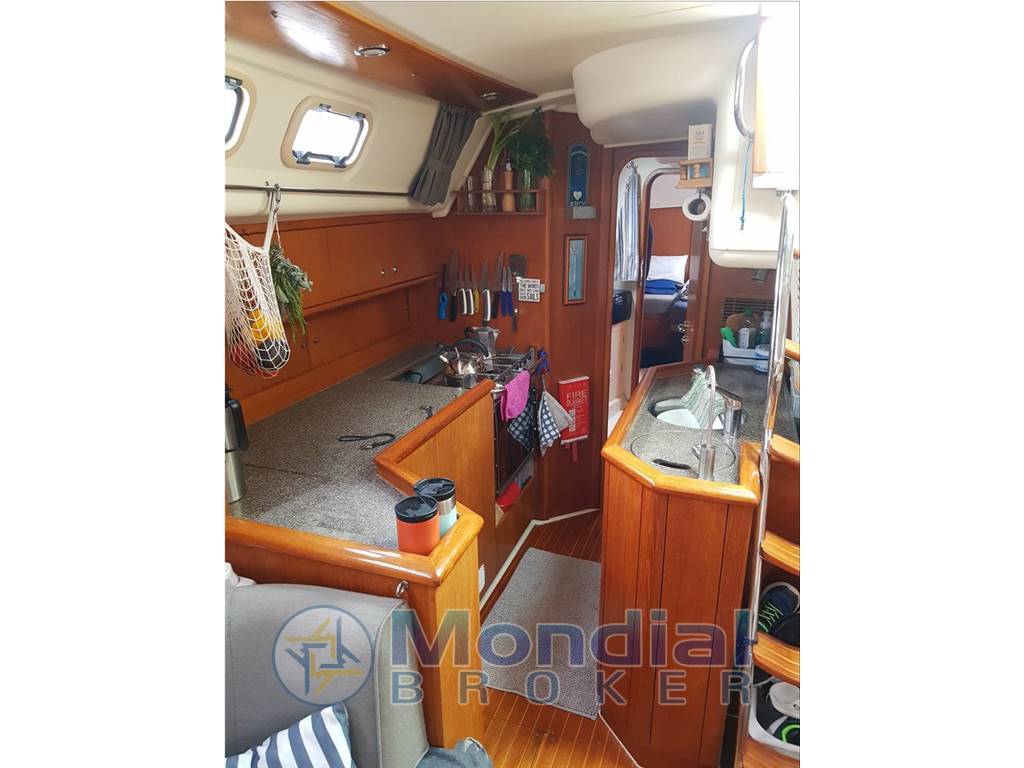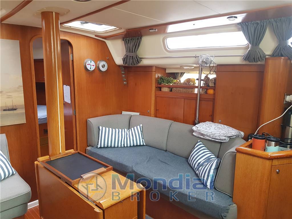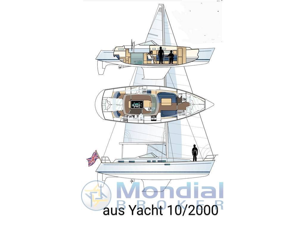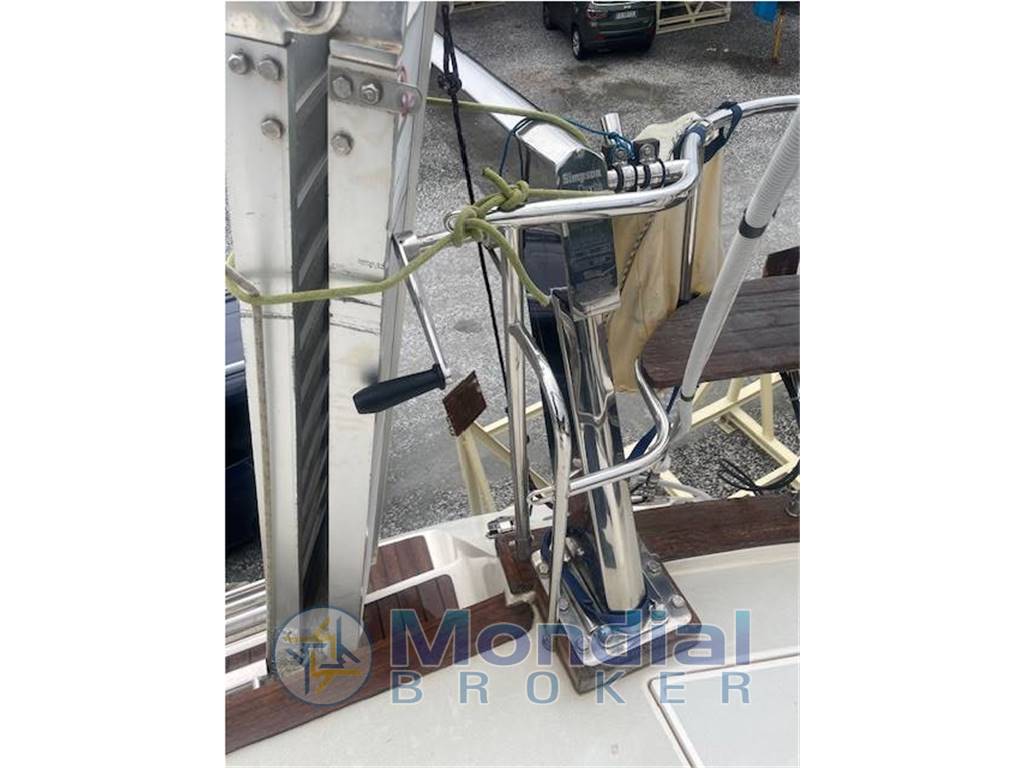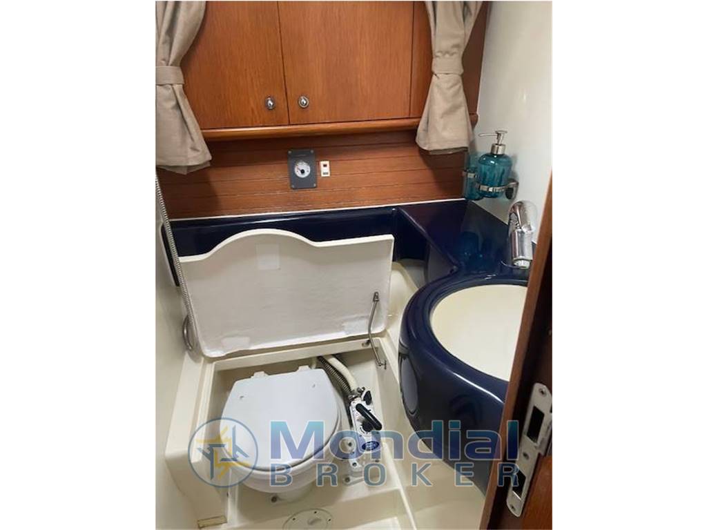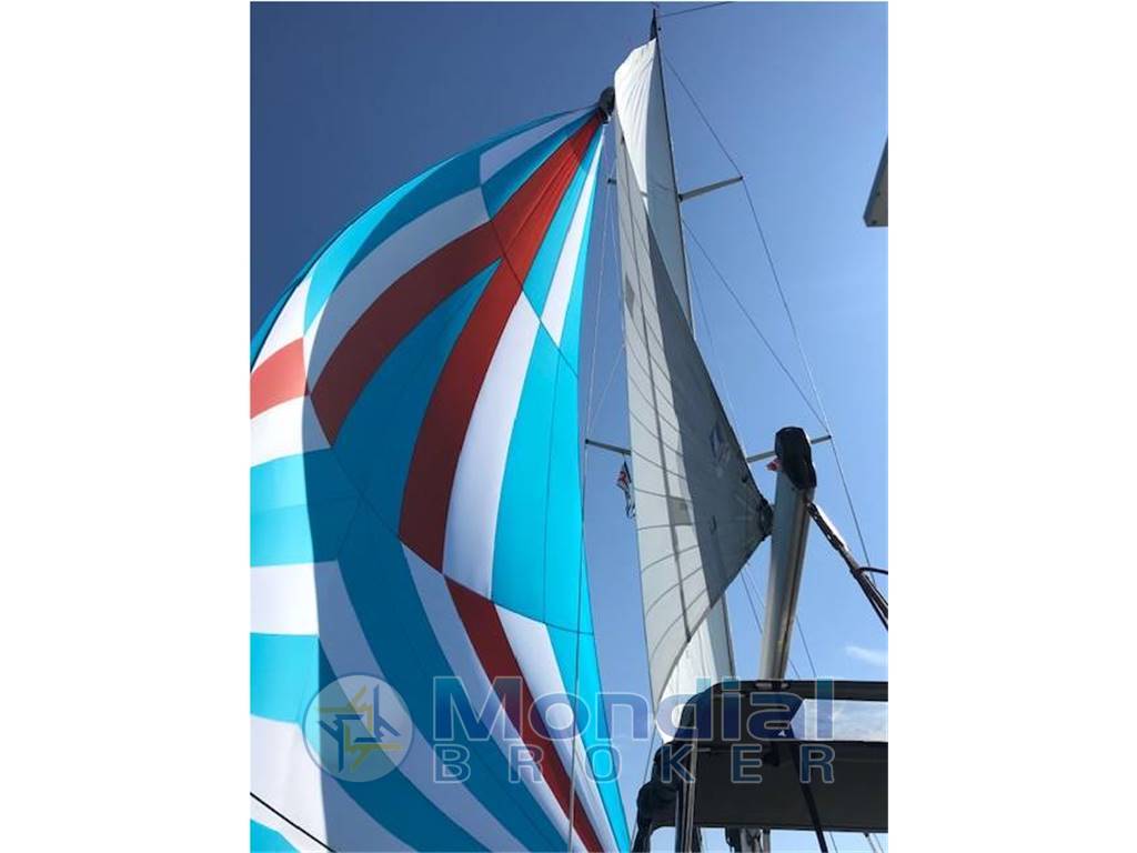 Notas internas1 bagno con spazio doccia indipendente e wc elettrico, a prua / 1 Bow head with separate shower and electric wc 2 cabine matrimoniali simmetriche a poppa / 2 Aft symmetric double cabins 1 bagno con doccia e wc elettrico, a poppa / 1 Aft head with shower and electric wc Ampia dinette con tavolo e divani contrapposti / Large saloon with table and facing sofa Cucina a elle con forno e frigo a sx / L-shape galley with oven and fridge on the left Carteggio a dx / Navigation table on the right Radio/Stereo CD / Radio Stereo CD Tendine oscuranti su osteriggi / Roller blinds for deck hatches Notas de la instrumentaciónElettronica completa Raymnarine / Raymarine complete electronic:Pilota automatico Raytheon RC520 / Raytheon 520 autopilot GPR Raymarine A95 / Raymarine A95 gps Log + eco + vento Raymarine ST60 / Raymarine ST60 speed + depth + wind Epirb / Epirb Radar Quantum Q24c / Quantum Q24c radar Notas de armamentoRanda avvolgibile nell'albero / In-mast furling mainsailGenoa avvolgibile / Roller furling genoa Avvolgiranda / Mainsail furling system Avvolgifiocco / Genoa furling system Trinchetta / Staysail Spinnaker / Spinnaker Asimmetrico per asimmetrico e spi / Asymmetric and spi gear Vang rigido / Rigid boom vang |