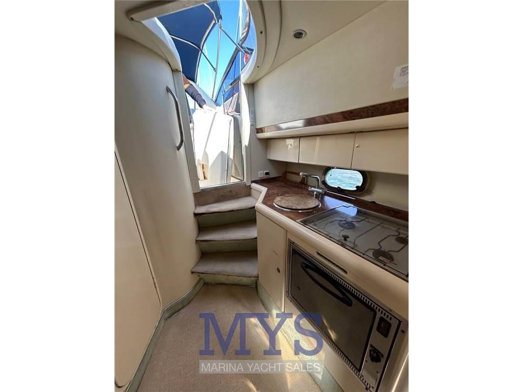 Notas internasCabina con 2 letti singoli in piano a poppa Bagno separato con wc elettrico, lavello e doccia Dinette trasformabile in ampio letto matrimoniale nel V di prua cucina con fuochi a gas, frigorifero, forno e lavello Notas de la instrumentaciónGPSFlaps Salpancora Elettrico Presa 220V da banchina Caricabatterie 4 Batterie Faro orientabile Prese interne 12v Prese interne 220v Altoparlanti Stereo Impianto TV 2 TV Frigorifero esterno Autoclave Boiler per l'acquca calda Passerella idraulica Notas de armamentoCuscineria di poppaCuscineria di prua Cuscineria Pozzetto Doccia esterna Piattaforma fissa in teak Pozzetto Teak Rollbar Scaletta da bagno Tender |