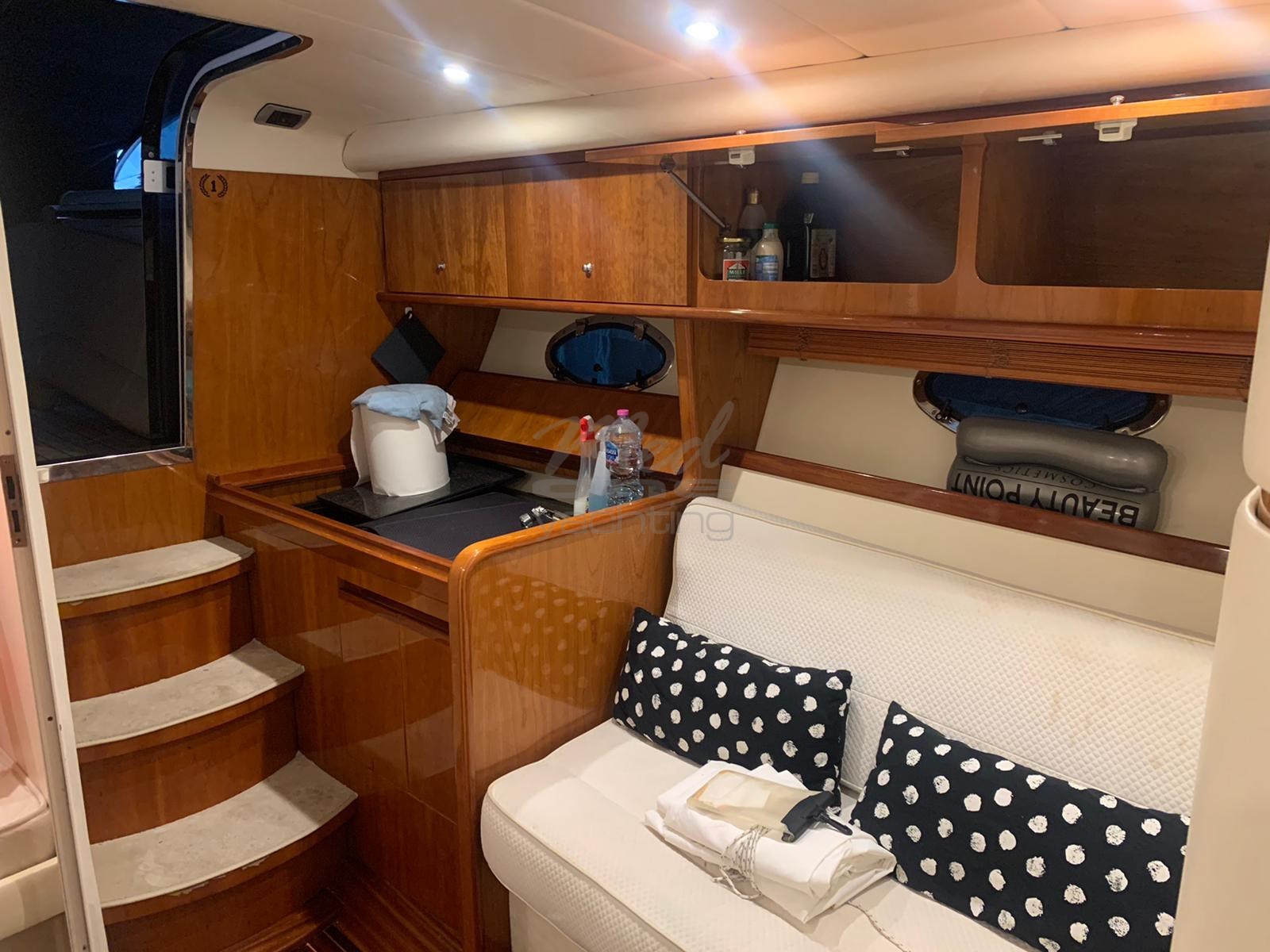 lavori eseguiti nel 2019: wrapping completo scafo sbarcati motori portati a vergine e riverniciati a ore 0 sostituzione valvole e igniettori sostituite guarnizioni e tubazioni sostituzione 1 motorino avviamento il secondo revisionato batterie nuove 2020 spiaggetta di poppa teak rifatto montaggio scaletta a scomparsa oltre a quella amovibile tendalino nuovo a chiusura completa riverniciatura completa sala motori sostituzione cavi e tubazioni nuovi tappezzerie esterne nuove prendisole a prua nuovo sostituzione pompe di sentina doccia esterna 50 mt catena nuova ancora nuova scadenza riina 2023 |