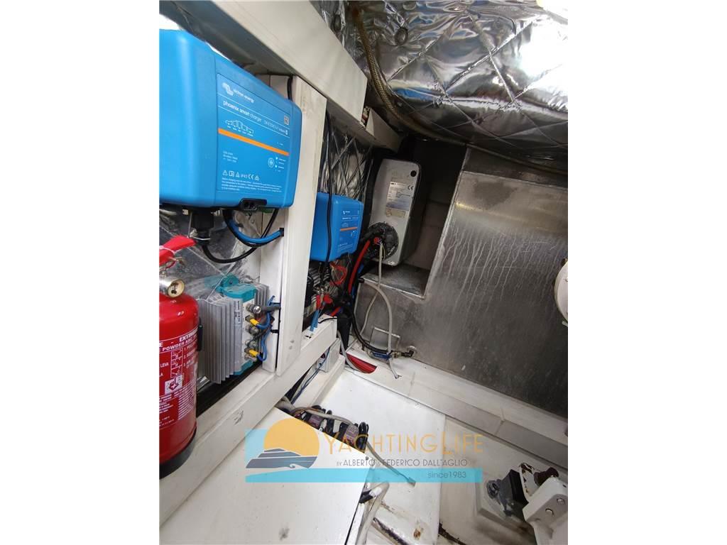 Notas de armamentoAltoparlanti, Antenna Satellitare TV, Aria condizionata, Boiler, Cappottina, 2 Cucina (1 a gas 1 elettrica), Cuscineria completa, Frigorifero esterno, Frigorifero interno, Giubbetti di salvataggio, Impianto TV, Microonde, Pavimento interno in legno, Piastra in vetroceramica, Prese interne 12v, Prese interne 220v, Stereo, Telo copriconsolle, TV, 2 WC marino elettrico