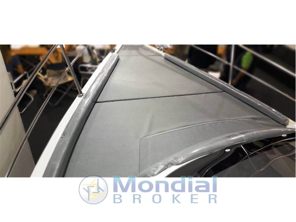 Notas internasNotas de la instrumentaciónAccessori di serie: Prendisole di poppa, cuscineria completa, corrimano di prua e poppa, volante, passacavo, boccole di scarico, monocavo, parabrezza, sportello, golfari, bitte, oblò, scaletta in acciaio inox, lavello, luci di via.Optionals EXTRA INCLUSI: Banda nera, tappezzeria De Luxe Levante beige/sabbia, quadretto in carbonio, capottina inox Achille NERA, prolunga prendisole di poppa, serbatoio carburante 91 lt con imbarco esterno e sonda, doccia rigida, Wc elettrico, frigorifero, salpa ancora elettrico, delfiniera con musone |