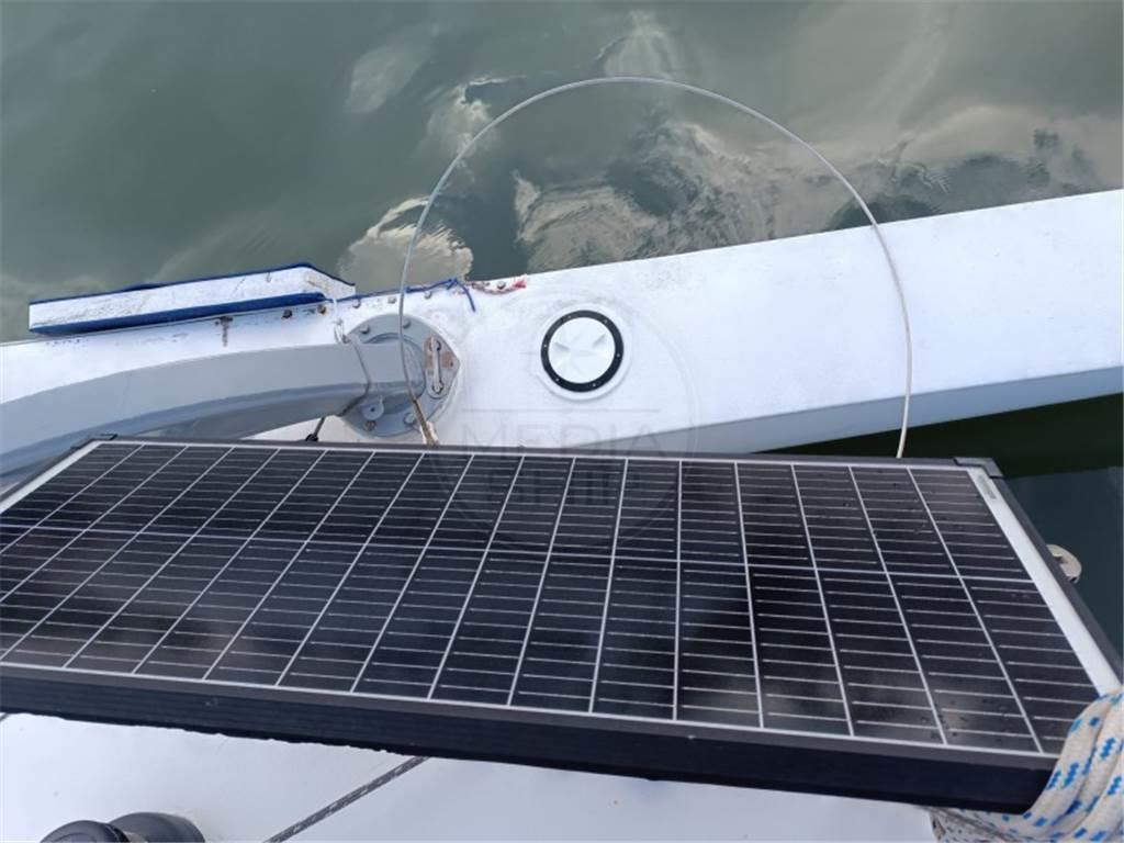 Notas internasNotas de la instrumentaciónBussola, Ecoscandaglio, GPS, Log, Pilota automatico, Radio VHF, Stazione vento.Notas de armamentoAllestimento tecnico e di coperta:Ancora, Pompa di sentina elettrica, Scaletta da bagno, Winch. Cucina ed elettrodomestici: Fornello (Gas), Frigorifero interno (Electric). Vele: Randa, Fiocco, Avvolgi Fiocco. |