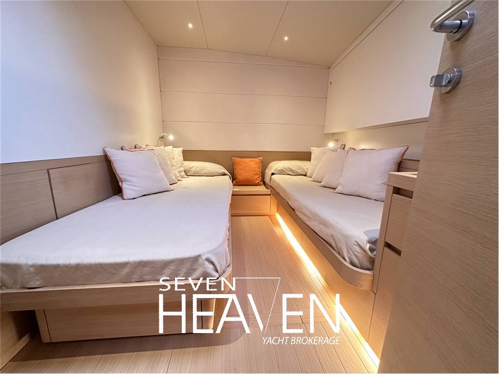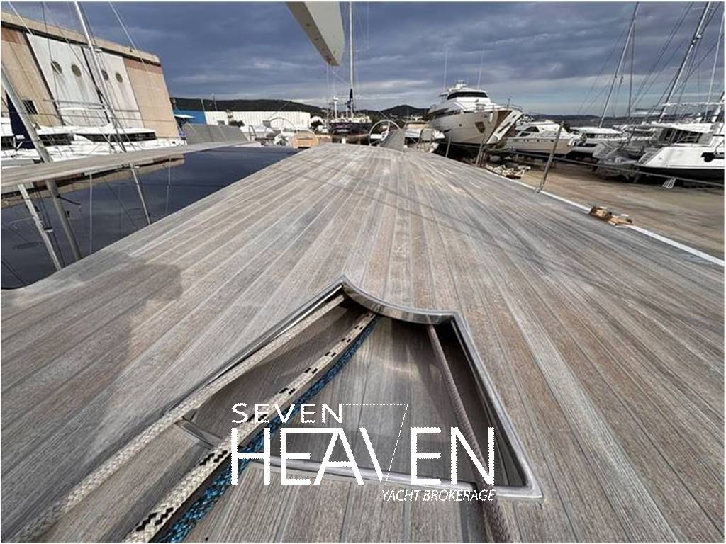 Notas internasPaioli in rovere 4 Bagni con wc elettrici Planus e box doccia separato Cucina in Corian bianco e doppio lavello inox 2 frigo ad apertura frontale in inox e Frigo/freexer a pozzetto Cucina Techimpex 3 fuochi a induzione con forno elettrico e cappa Lavastoviglie, lavasciuga e ice maker Aria condizionata Frigomar caldo/freddo 42000BTU con 6 fancoil (2 in dinette) Generatore Onan 11MDKDM 11Kw con filtro Rakor 2 boiler elettrici e con scambiatore 60 lt Stereo Fusion Apollo RV-RA770 con 4 altoparlanti (di cui 2 in pozzetto) e subwoofer in pozzetto (sotto il tavolo) Smart TV in dinette connesa al plotter Raymarine Desalinizzatore Shenker 100 lt/hr 24V 2 serbatoi acqua in composito stutturali per 900 lt totali, 2 serbatoi in polietilene (120 lt ciasc.) acque grigie e due serbatoi acque nere 2 serbatoi gasolio in inox + giornaliero (150lt) per totali 1190 lt Prese di corrente 220V e 12V in tutti gli ambienti Maggiori info e foto su www.7hyb.it Contatto diretto: Filippo Martini +39 392 4909184 Notas de la instrumentaciónElettronica completa RaymarinePilota automatico ACU 400 con pistone idraulico Controllo autopilota p70s 2 display multifunzione Axiom 12’’ su consolle timoneria 1 display multifunzione Axiom Pro 12’’ in carteggio 3 multifunzione Axiom 7’’ all’albero su supporto in carbonio Radar Quantum 24mn su prima crocetta VHF RAY 260 AIS 650 Comando elica di prua 2 caricabatterie Mastervolt Mass 24/100 100A 2 caricabatterie Mastervolt DC-DC Magic 24/12 20A Inverter Mastervolt 24/2500 2,5Kw Batterie servizi Mastervolt MLI Ultra 24/5500 al litio 24V 400Ah Batterie AGM 24V 220Ah per elica di prua, idraulica, tonneggio, salpancore e rollafiocco idraulico Batteria generatore Optima 12V 75Ah e motore 12V 95Ah Domotica di bordo connessa al plotter in carteggio Ebirb Ocean Signal Maggiori info e foto su www.7hyb.it Contatto diretto: Filippo Martini +39 392 4909184 Notas de armamentoCoperta e pozzetto interamente in teak con comento grigioPlancia di poppa con sistema elettrico di apertura Albero in carbonio Maxspar a tre ordini di crocette Boma in carbonio park avenue Sartiame e strallo di prua in carbonio Punto fisso scotta randa in pozzettoe Magictrim nel boma No paterazzo Avvolgifiocco elettrico Bamar EJF 2 Vang Rigido Attrezzatura di coperta Antal Carrelli fiocco regolabili da pozzetto Centralina idraulica per vang, base 4 winch elettrici Antal XT80.3H24/AL controllati da timonerie Delfiniera di prua in carbonio Lazy jack Maggiori info e foto su www.7hyb.it Contatto diretto: Filippo Martini +39 392 4909184 |
