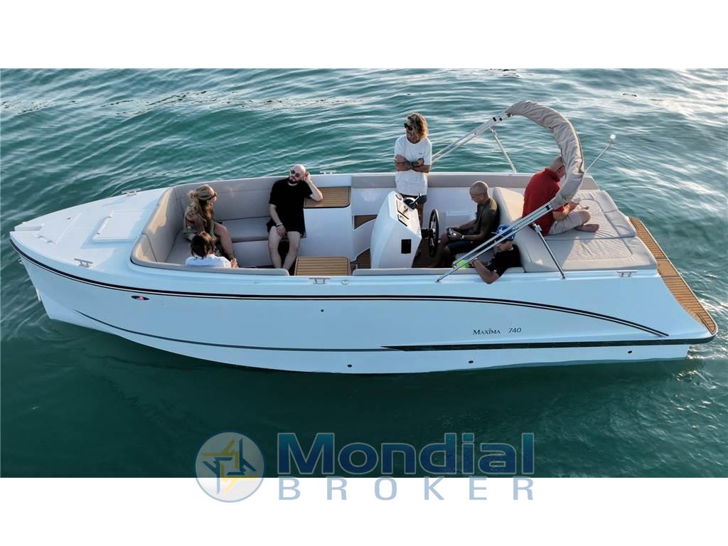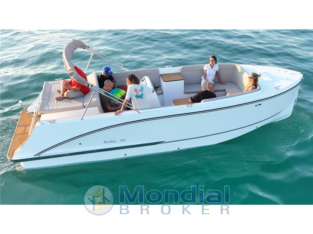 La Maxima 740 con Honda BF 250 unisce lusso, prestazioni potenti ed efficienza, offrendo un'esperienza di navigazione elegante e confortevole. |